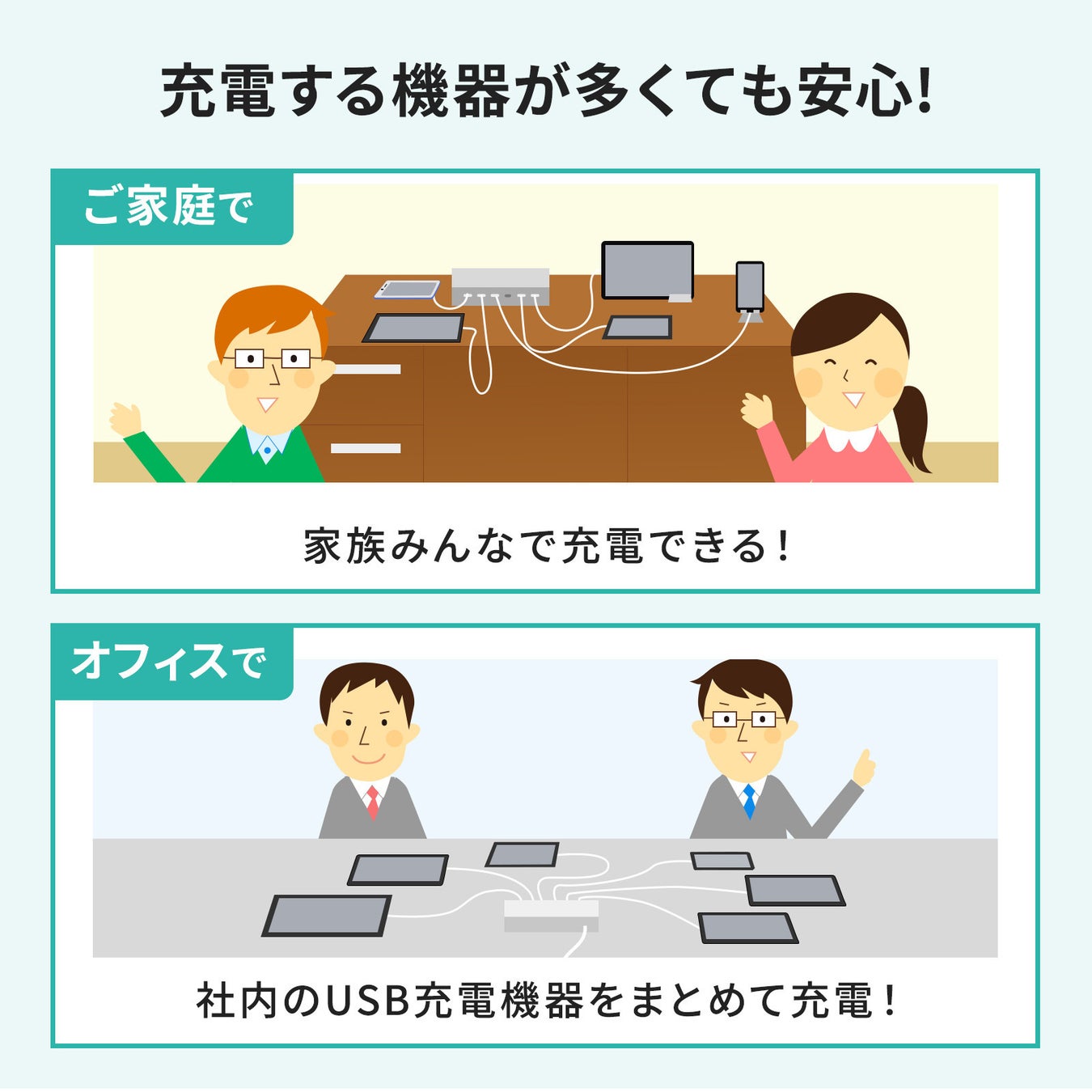 ご家庭やオフィスでUSB Type-C機器をまとめて充電できます。