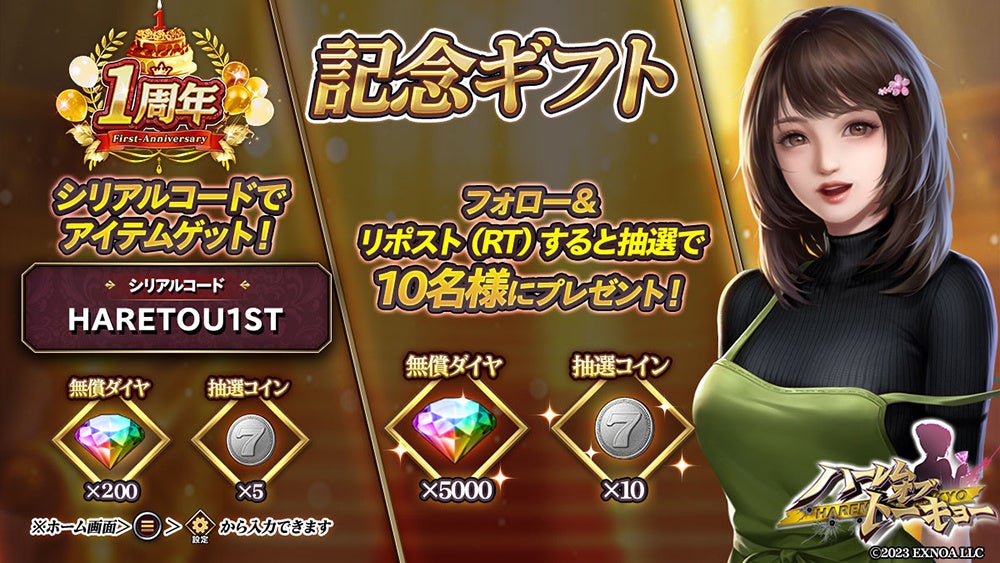 300連分の抽選券が無料!アウトローハーレム系経営RPG『ハーレムオブトーキョー』の1周年キャンペーン開催!