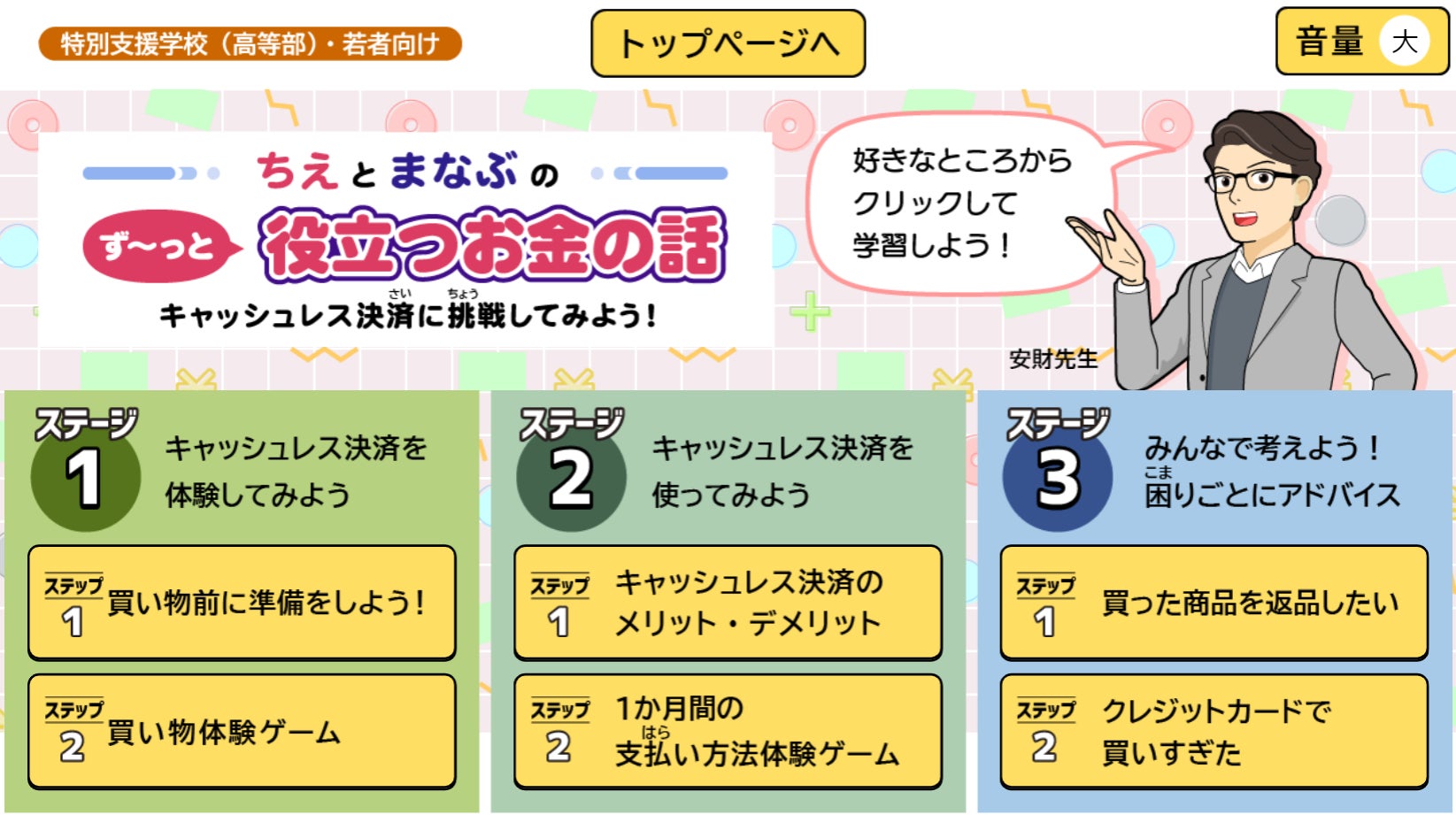 キャッシュレス決済を含めた金銭管理や契約の基礎知識などを学べる教材です。