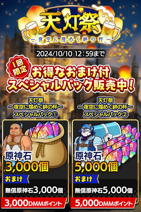 1回購入限定の「天灯祭~夜空に煌めく絆の杯~」スペシャルパックが2種期間限定で登場!