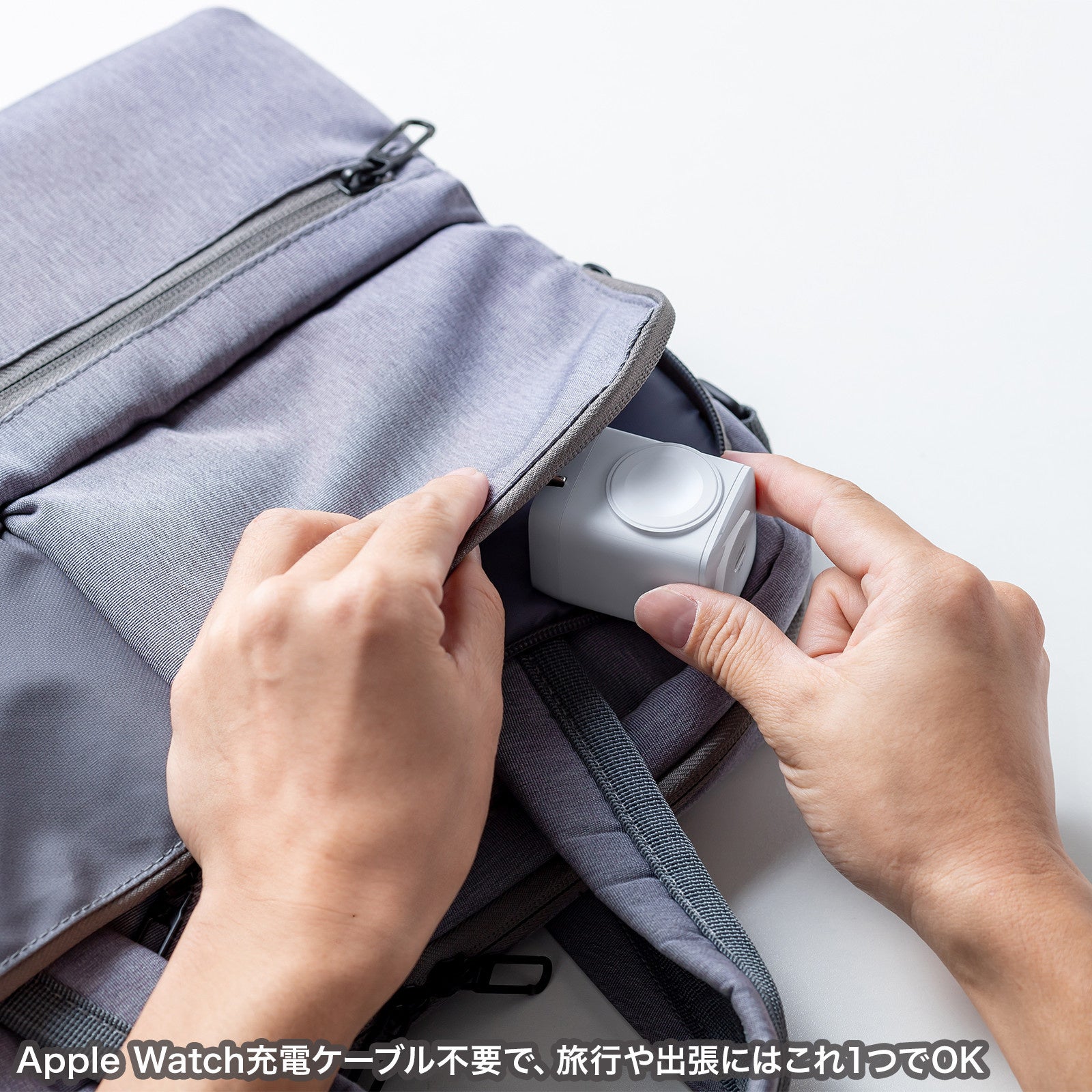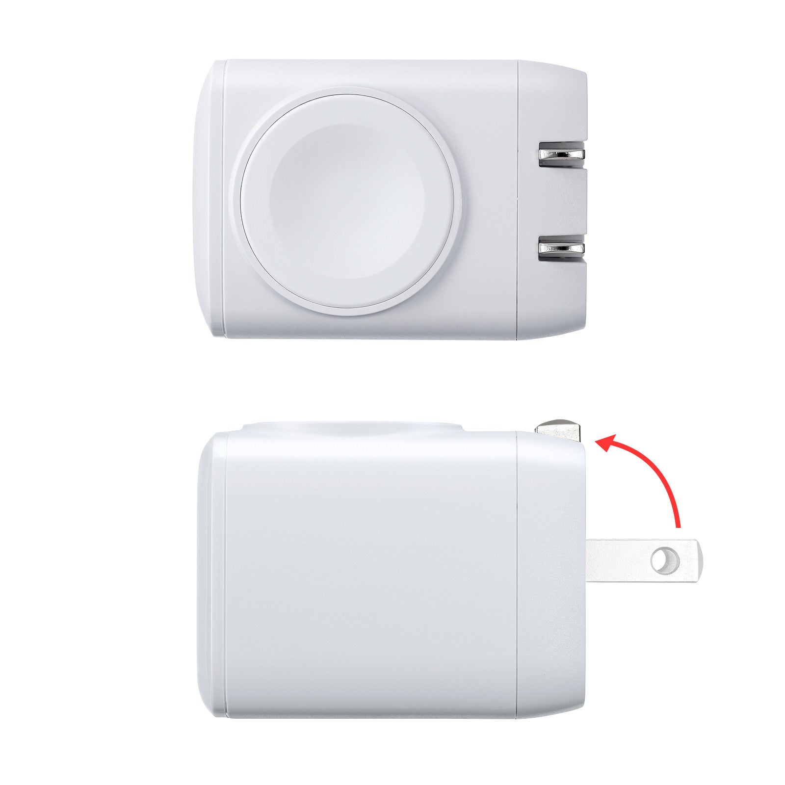 iPhoneやiPad、AirPodsなどのUSB Type-Cポートを使って充電する機器とApple Watchを1つの充電器で同時に充電できる、Apple Watch磁気充電モジュール一体型のAC充電器です。