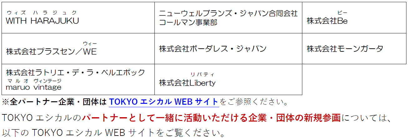 「TOKYOエシカル」の新たなパートナー企業・団体をご紹介!