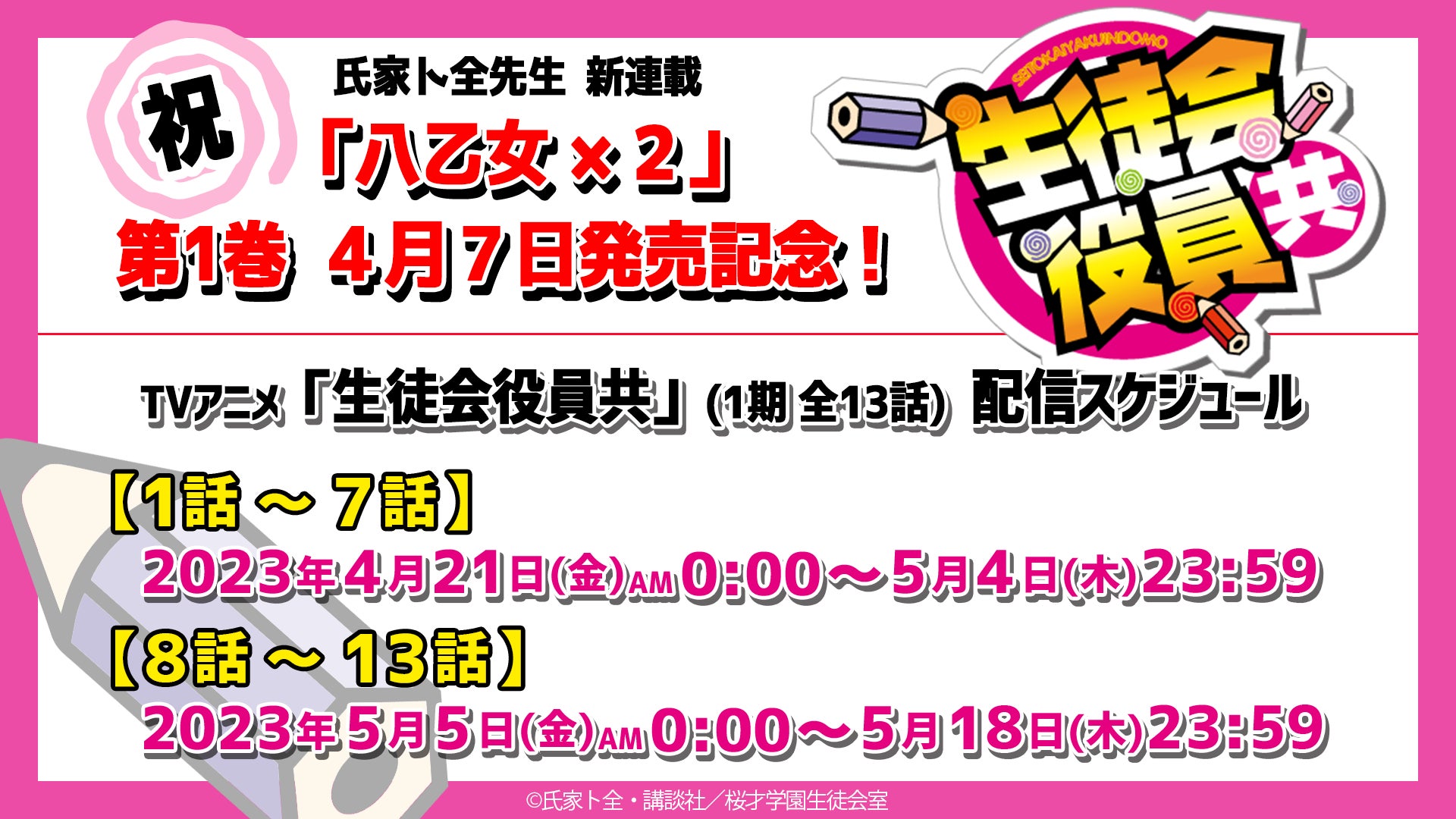 TVアニメ「生徒会役員共」YouTubeで1期全話を無料公開、本日配信開始【新連載「八乙女×2」第1巻発売記念!】
