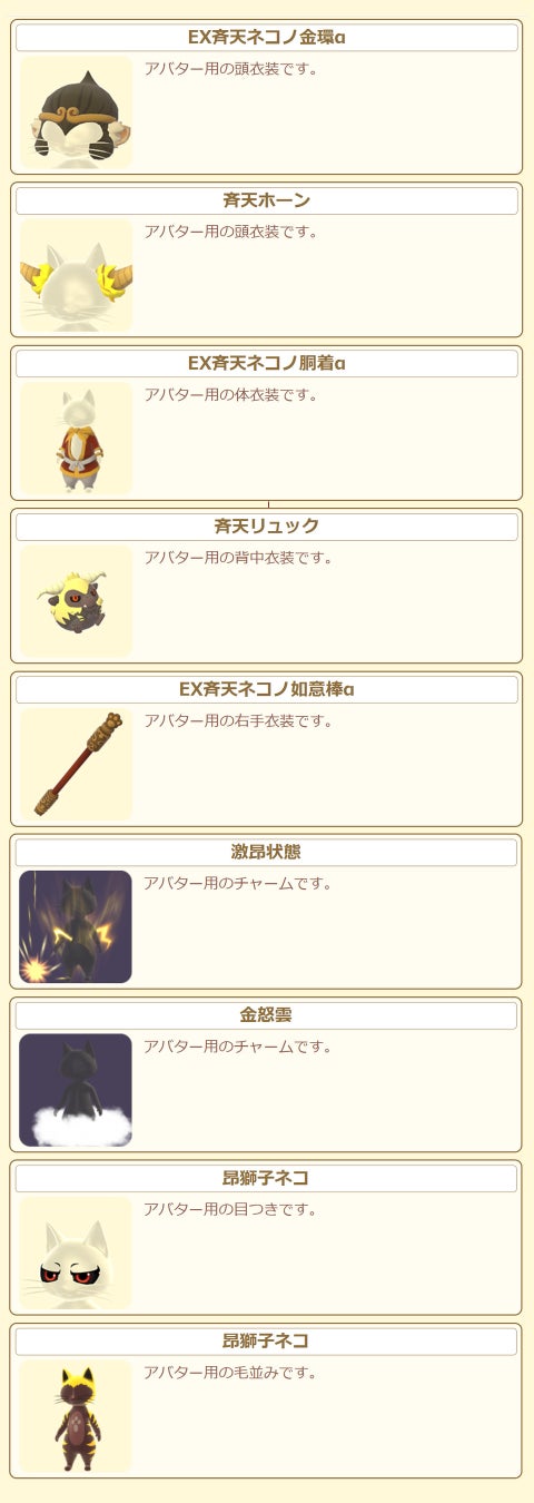 仲間と協力して昂獅子を撃退し、イベント限定素材「金獅子の怒髪天」を集めて「EX斉天ネコノ胴着α」などの協力イベント報酬装備を手に入れよう!
