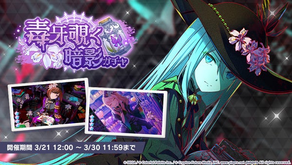 株式会社セガ(本社:東京都品川区、代表取締役社長COO:杉野行雄)と株式会社Colorful Palette(本社:東京都渋谷区、代表取締役社長:近藤裕一郎)は、iOS/Android向けリズム&アドベンチャー『プロジェクトセカイ カラフルステージ! feat. 初音ミク(以下、プロジェクトセカイ)』について、2023年3月21日(火)より、ゲーム内イベント「イミシブル・ディスコード」、「毒牙覗く暗影ガチャ」を開催中です。