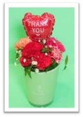 花言葉に「母への愛、美しいしぐさ、きらめき」などを持つお花をアレンジしました。イオンオリジナルのミントグリーンの器で、お花が一層引き立ちます。