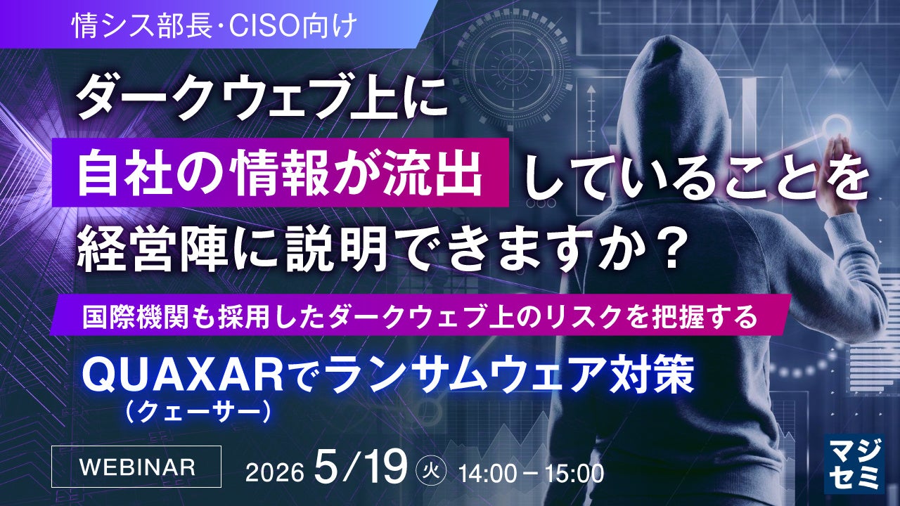 マジセミ株式会社は「【情シス部長・CISO向け】ダークウェブ上に自社の情報が流出していることを経営陣に説明できますか?」というテーマのウェビナーを開催します。