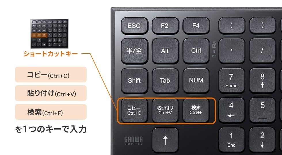 コピー(Ctrl+C)、貼り付け(Ctrl+V)、検索(Ctrl+F)が1つのキーで入力できる