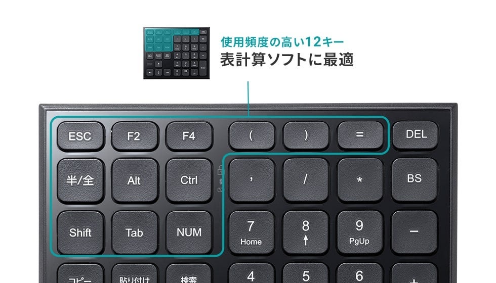 一般的なテンキーに搭載しているキーに加え、Excelに最適なキーを搭載した表計算テンキーです。