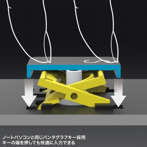 ノートパソコンと同じパンタグラフキーを採用しています。軽快な押し心地で、キーの端を押しても快適に入力できます。