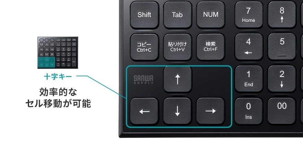 十字キーも搭載しており、効率的なセル移動が可能になります。