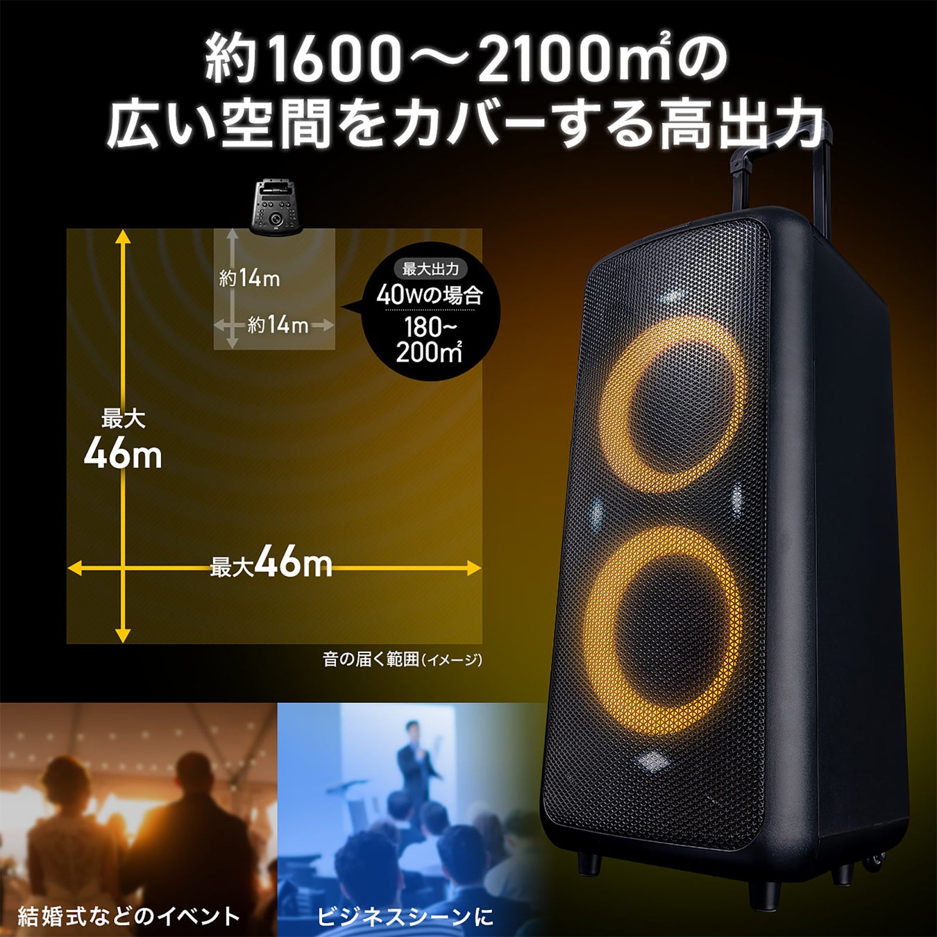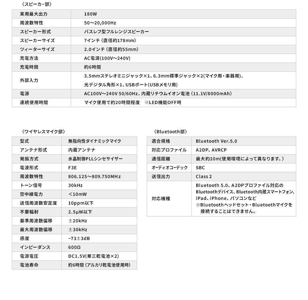 ・最大180W出力で体育館並みの広さでも問題なし