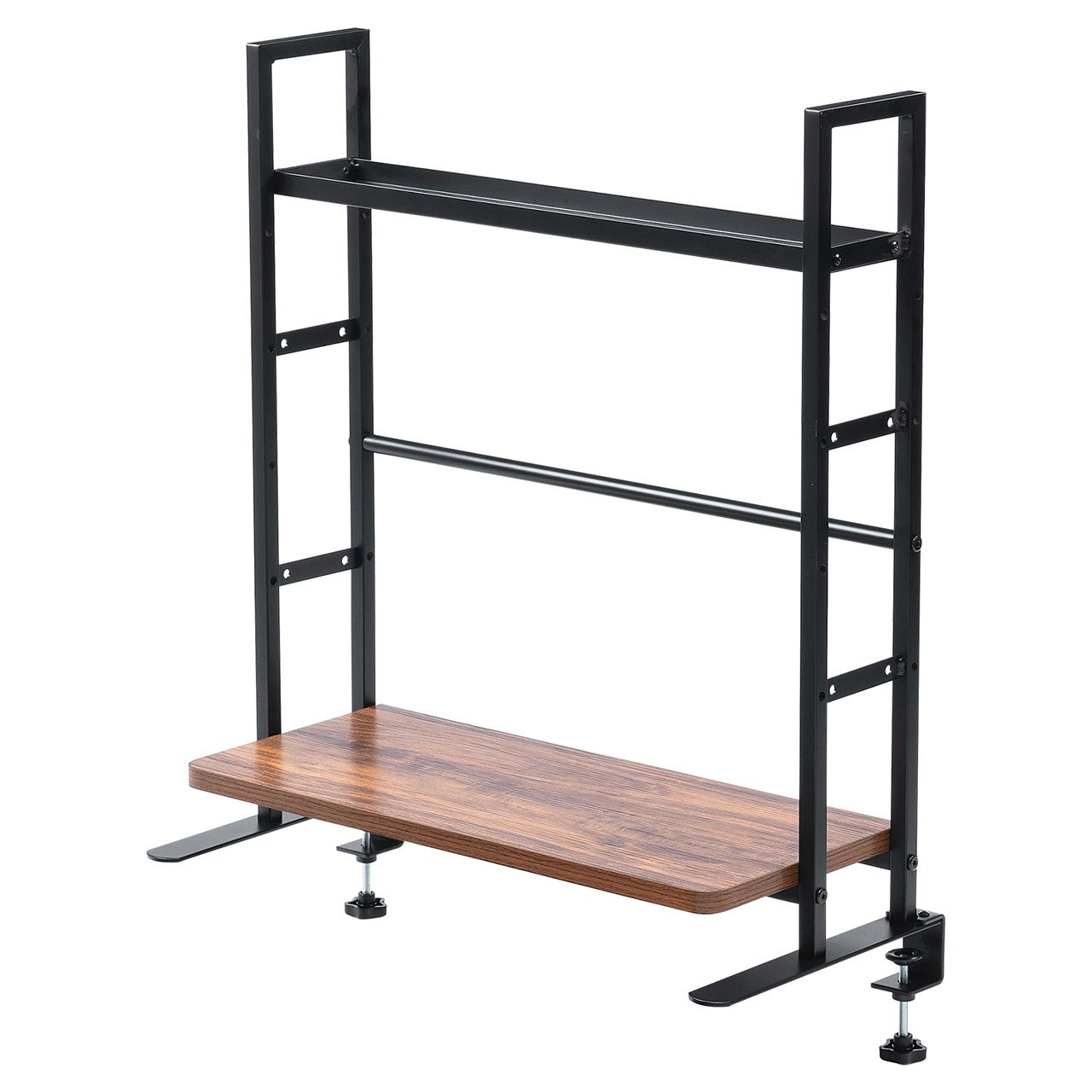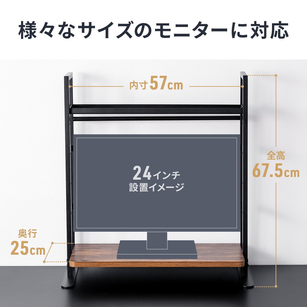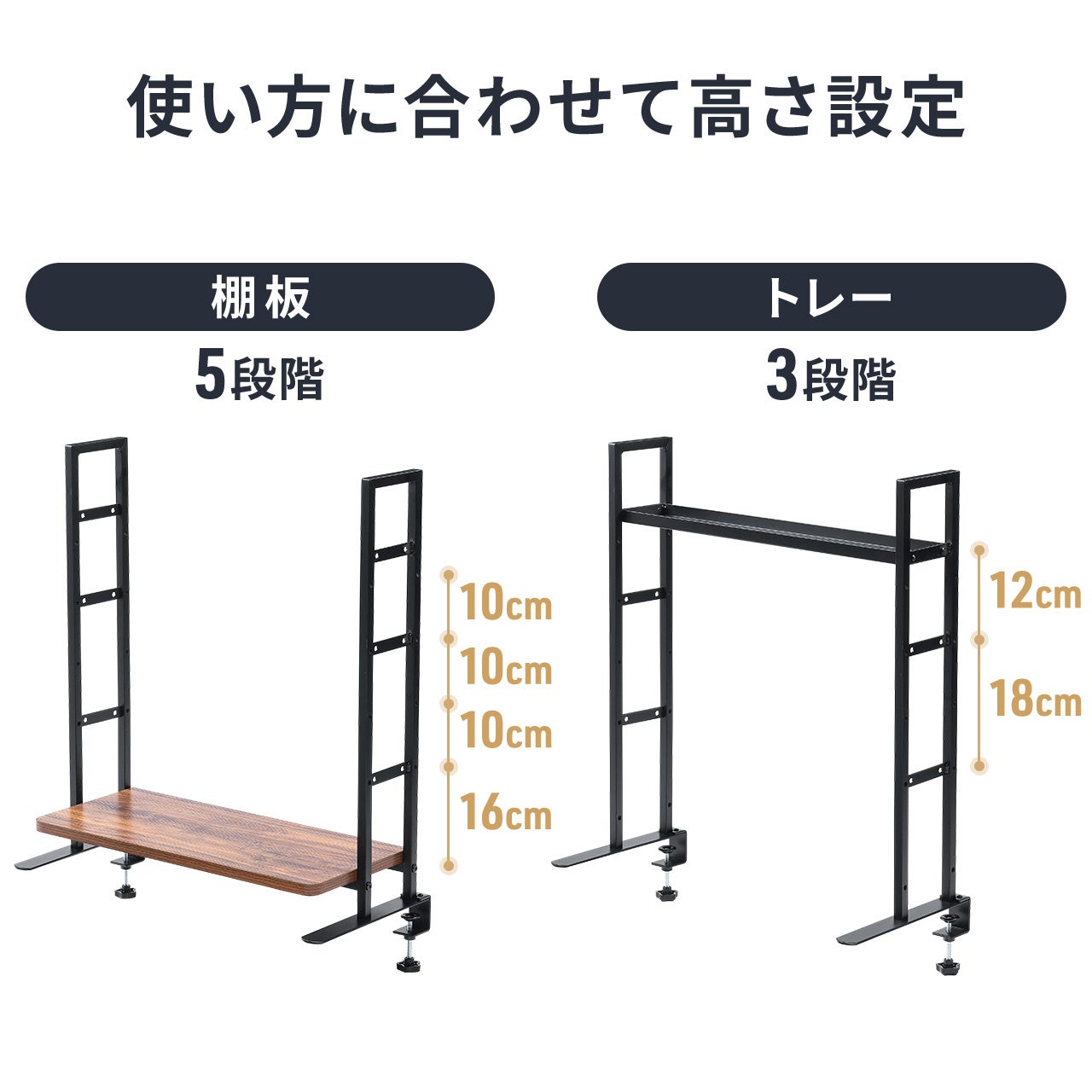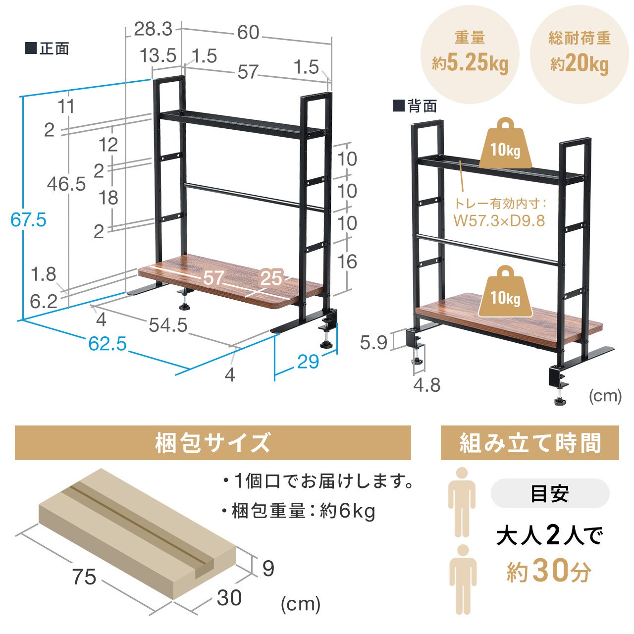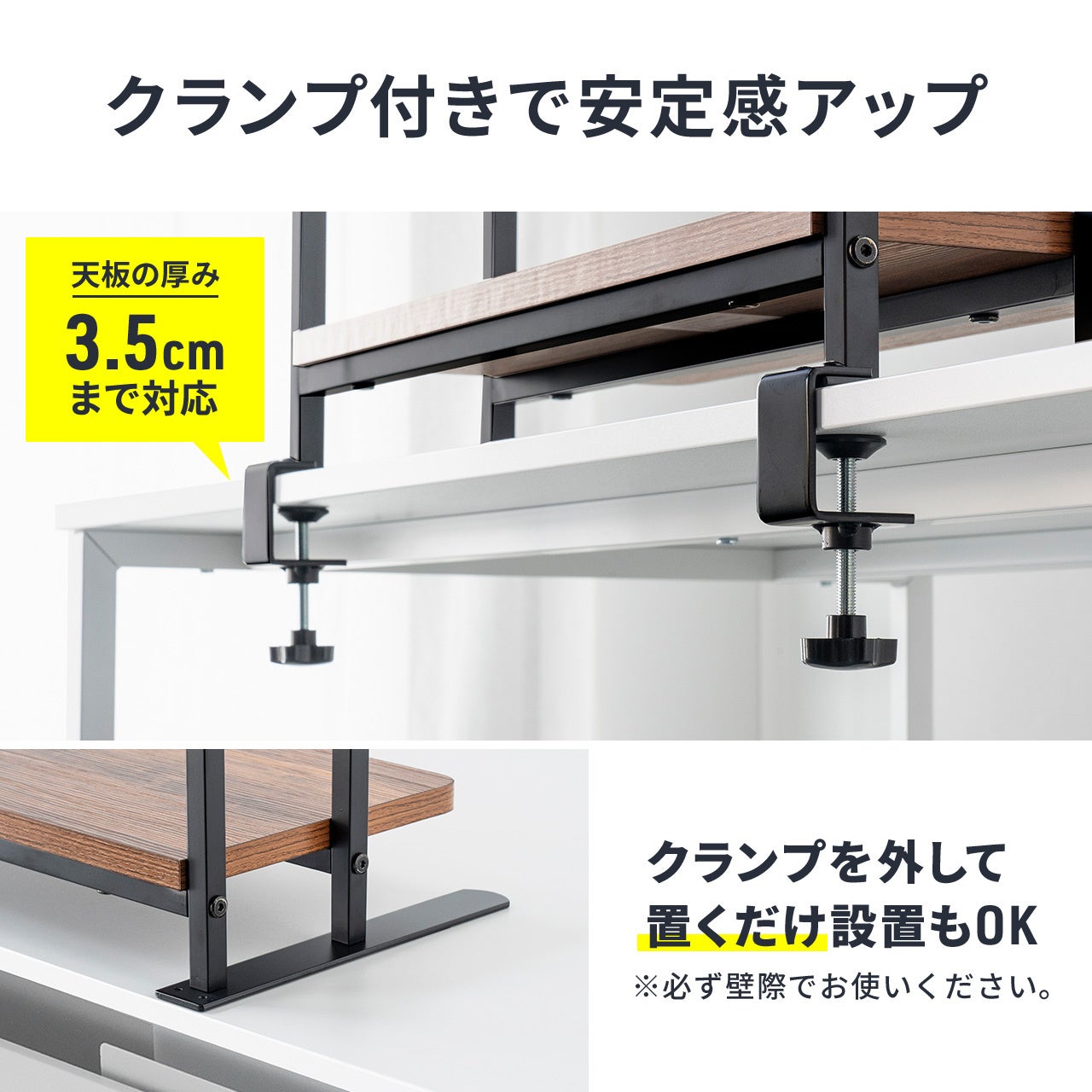 デスク上収納ラック 机上台 幅62.5cm クランプ式 2段 ハイタイプ シェルフ 机上ラック モニター台 モニター裏収納 木目調 ダークブラウン