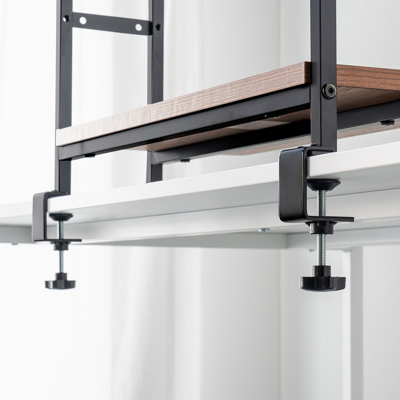 クランプでしっかり固定できるのはもちろん、クランプを外せば置くだけで設置も可能。設置が難しい場所やデスクの配置に制約がある場合でも、柔軟に使うことができるため、オフィスやリモートワークの幅広い環境に対応します。