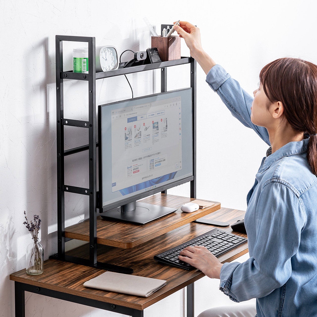 クランプでガッチリ固定!モニターの上・下・裏を有効活用できる机上ラックを11月13日に発売