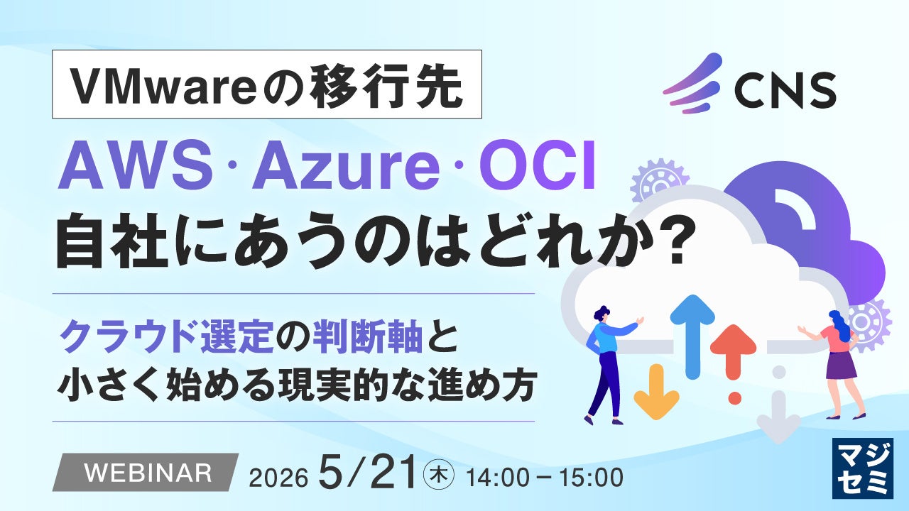 マジセミ株式会社は「VMwareの移行先、AWS・Azure・OCI 自社にあうのはどれか?」というテーマのウェビナーを開催します。