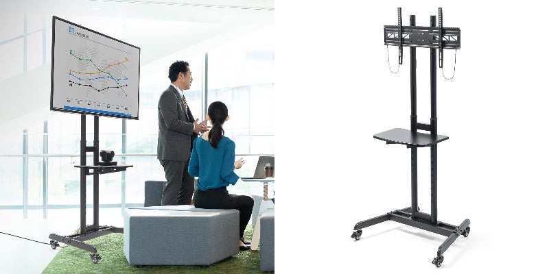 サンワサプライ株式会社(本社:岡山市北区田町1-10-1、 代表取締役社長 山田 和範)が運営している直販サイト『サンワダイレクト』では、高さ調整可能で、全キャスターストッパー付、レコーダーやプレイヤーを設置できる棚板付きの32型~75型対応大型テレビ/モニタ/ディスプレイを設置可能なテレビスタンド「100-PL035」を発売しました。