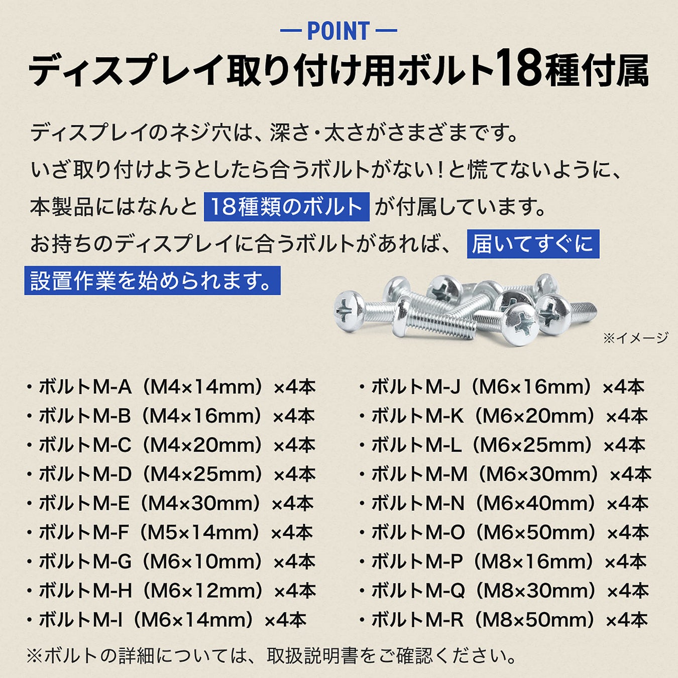 ・32型~75型の大型ディスプレイに対応し、高さ調整可能