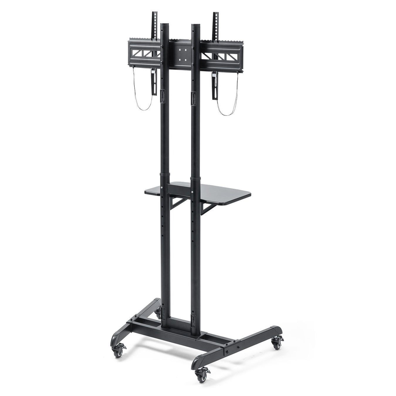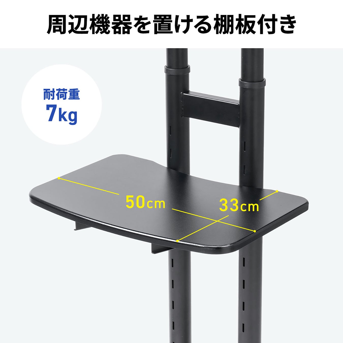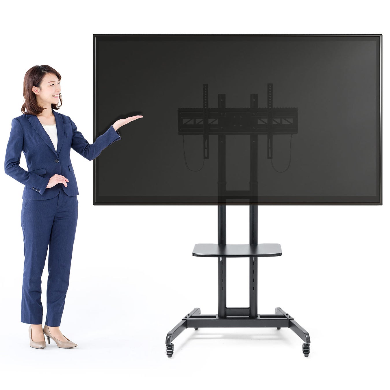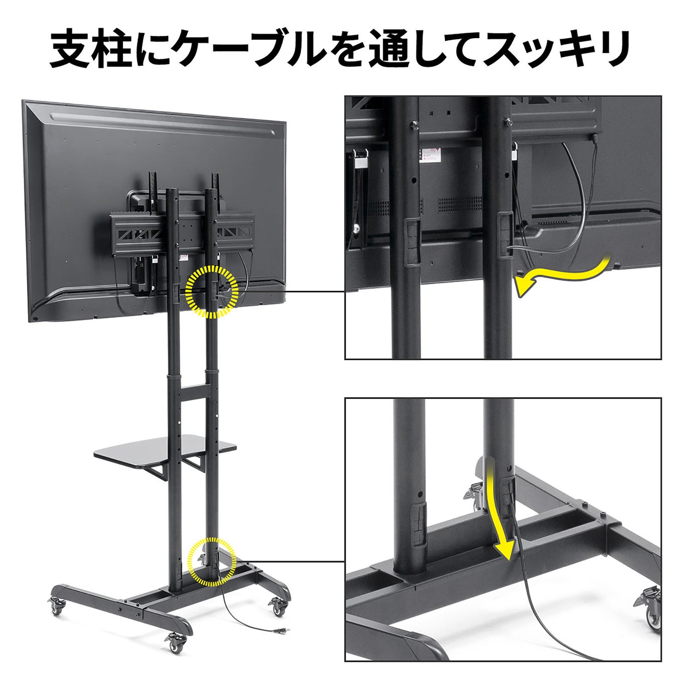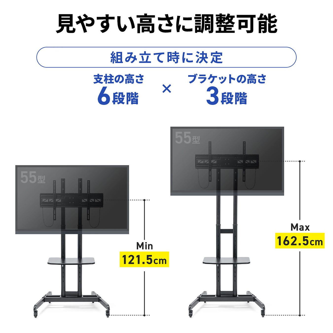 高さ調整可能で、全キャスターストッパー付、レコーダーやプレイヤーを設置できる棚板付きの32型~75型対応大型テレビ/モニタ/ディスプレイを設置可能なテレビスタンド