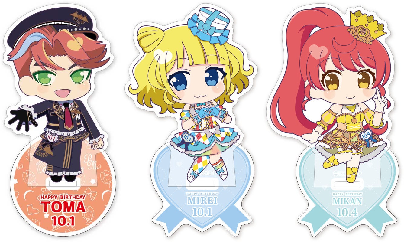 ハピプリバースデー202310 アクリルスタンドプチ(とうま/みれぃ/みかん) 各1,430円(税込)