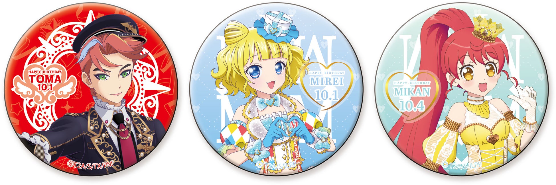 ハピプリバースデー202310 缶バッジ(とうま/みれぃ/みかん) 各715円(税込)