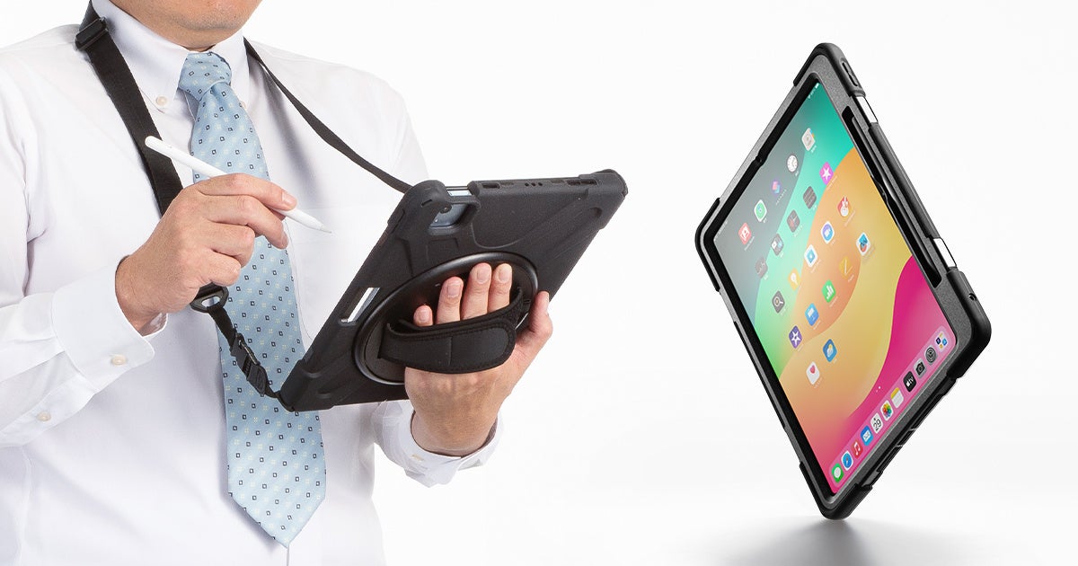 耐衝撃素材と二重構造で、iPadを外部からの衝撃から守ります。