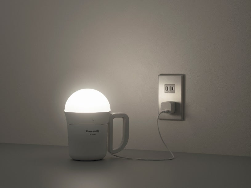 今回発売する新モデルは、最大800 ㏐(ルーメン)の明るさはそのままで、タッチセンサーの操作により明るさ(調光)を無段階に、あかりの色(調色)は3段階に調節できるので、部屋の雰囲気や使用シーンに合わせて変化させることができます。また新たにUSB入・出力端子を採用しました(※3)。コンセントやパソコンから給電(入力)できるほか、モバイルバッテリーとしての使用(出力)や(※4)、停電時には自動的に本体を点灯(※5)させることもできるので、夜間の停電や避難の際にも役立ちます。