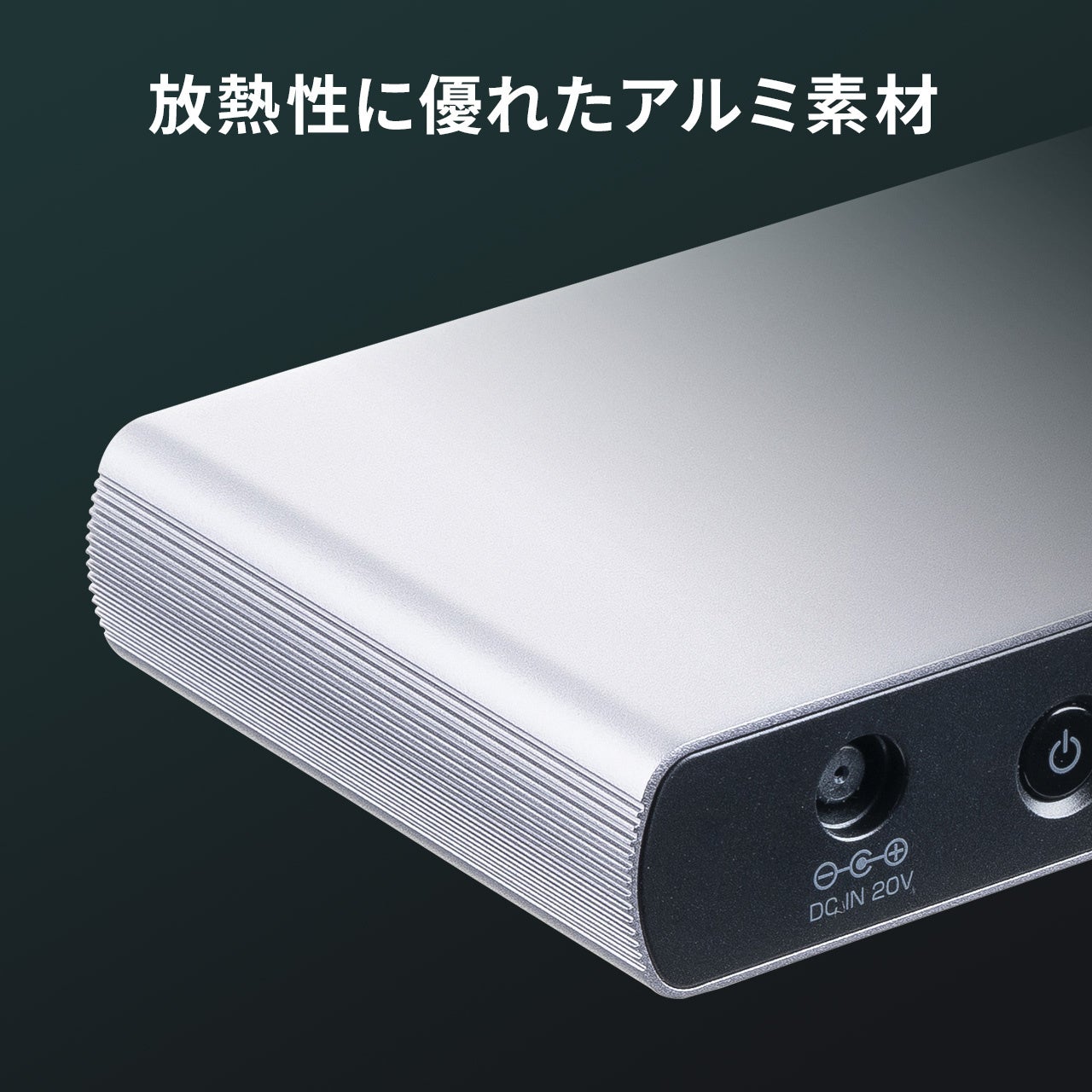 コンパクトサイズで本体は放熱性に優れたアルミ製です。TB4ケーブル(65cm)付きです。