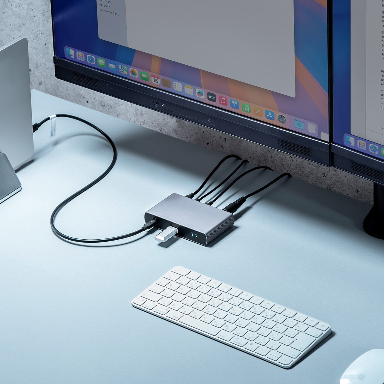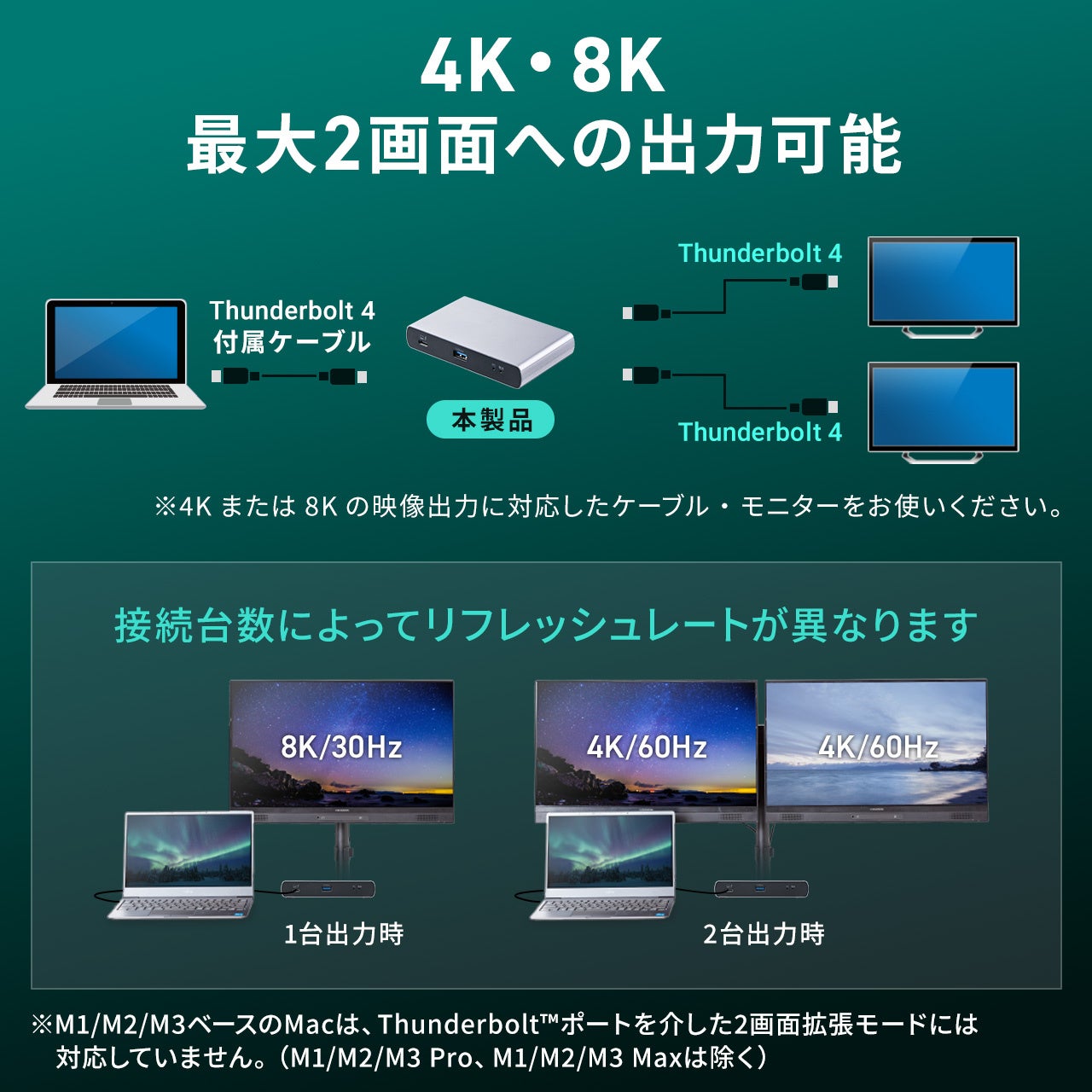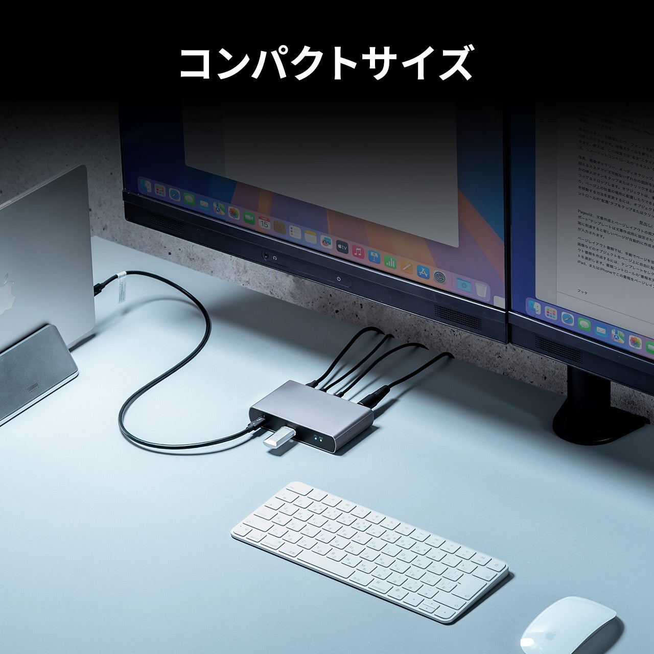 本製品は、ケーブル1本で最大2画面の映像出力(Thunderbolt4出力)ができるThunderbolt4ドッキングステーションです。