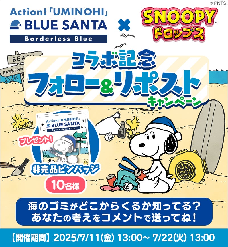 「スヌーピードロップスで学ぶ、海の未来」ビーチクリーンイベント「BLUE SANTA」とのコラボレーションを発表!