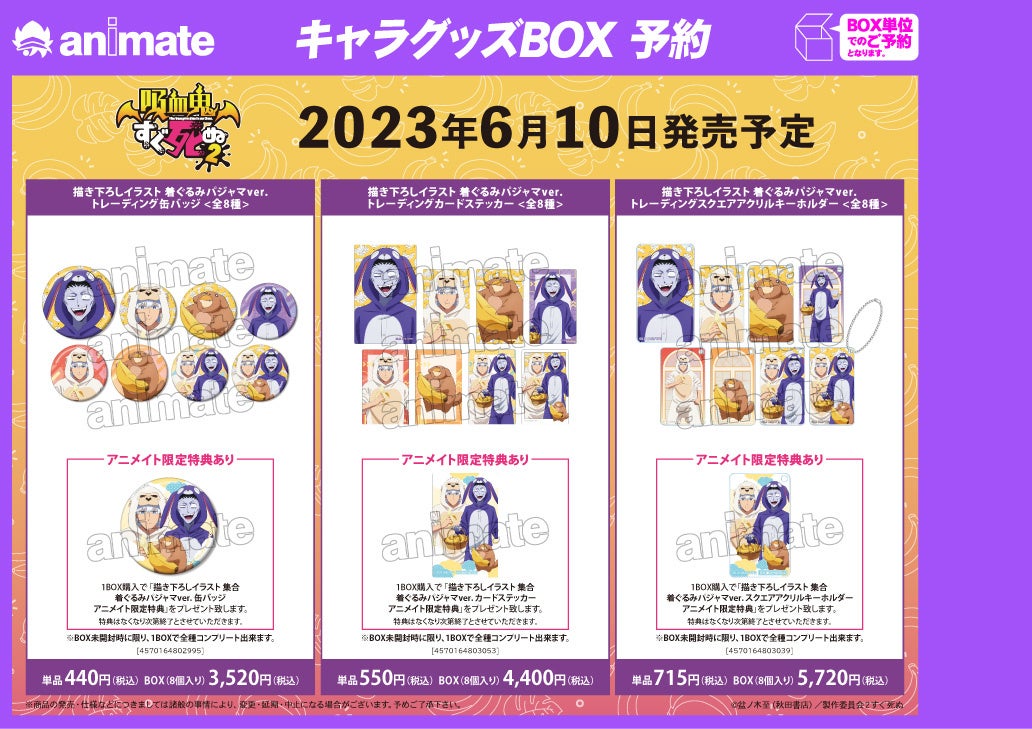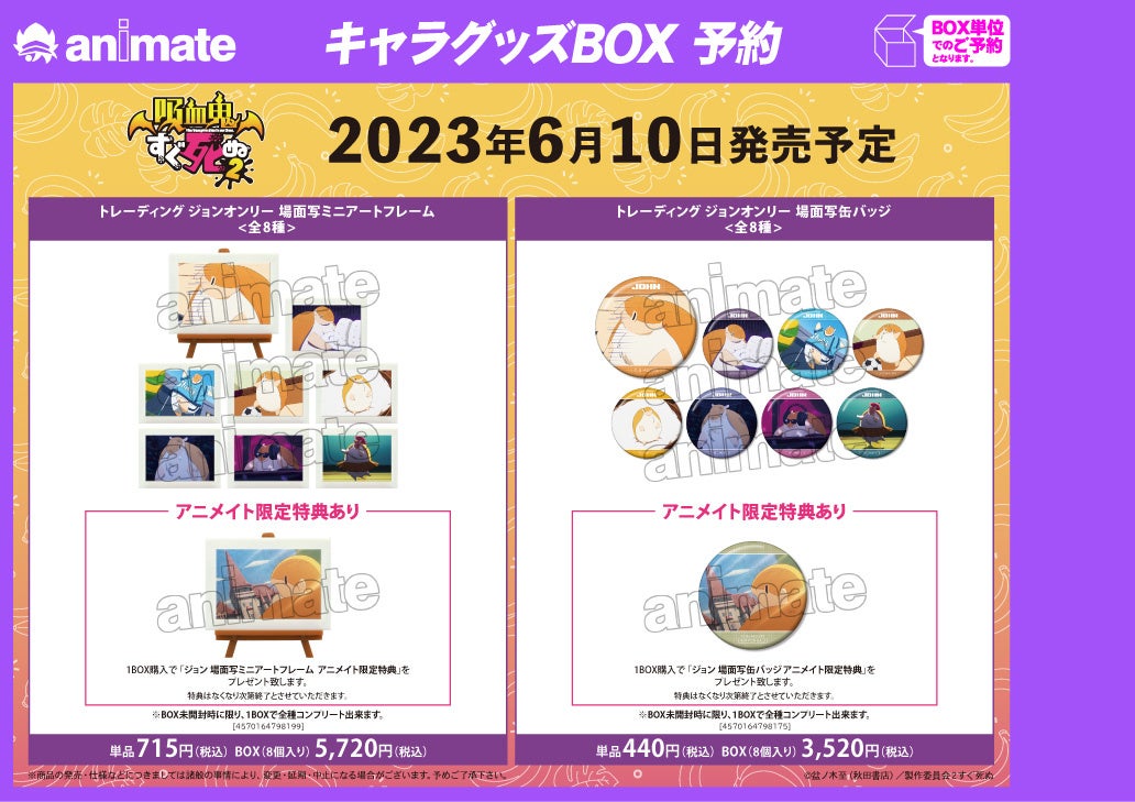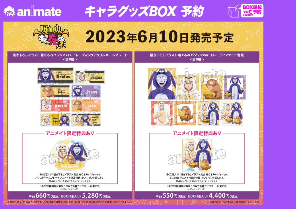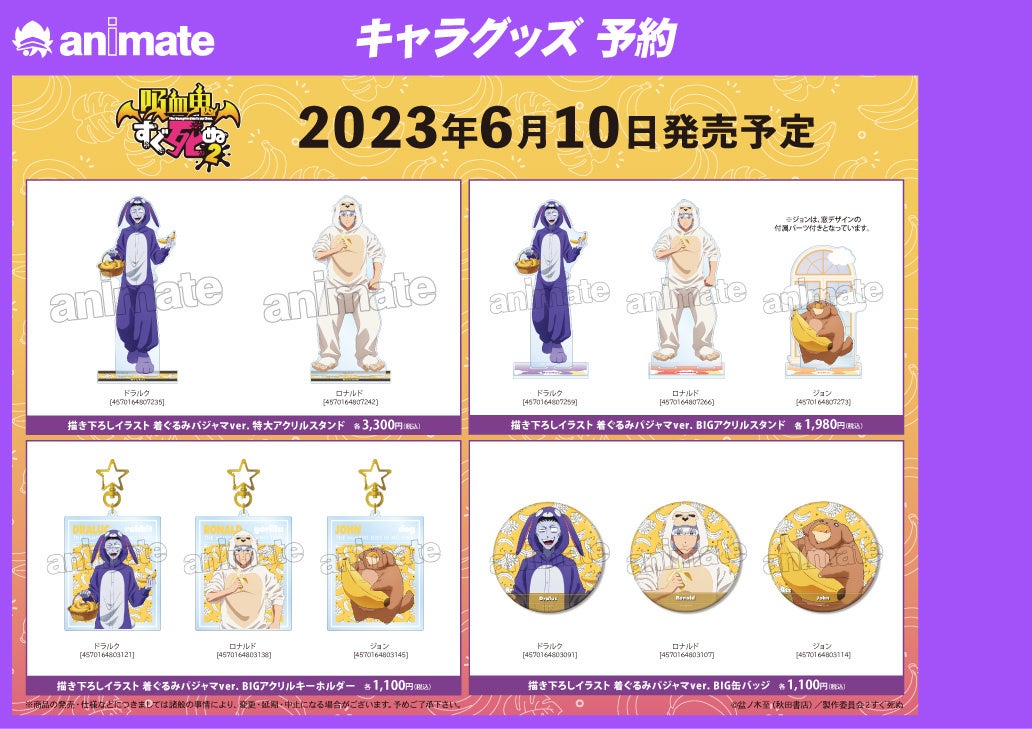 2023年6月10日(土)よりアニメイト対象店舗にて「『吸血鬼すぐ死ぬ2』アニメイトフェア」の実施が決定いたしました。