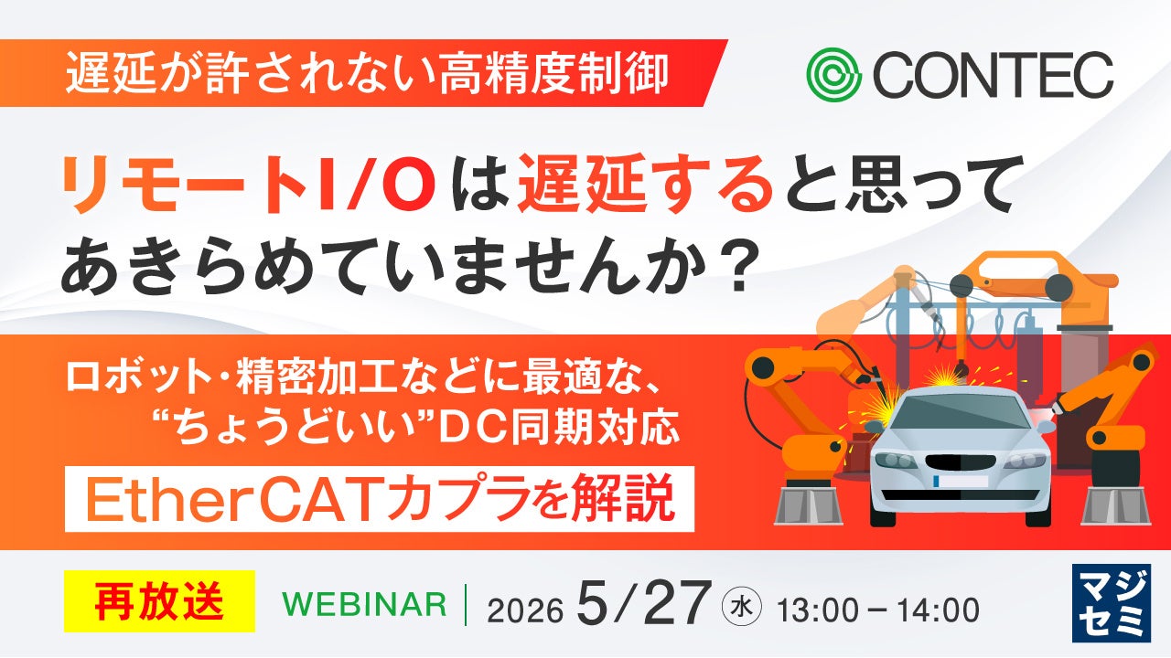 マジセミ株式会社は「【再放送】【遅延が許されない高精度制御】リモートI/Oは遅延すると思ってあきらめていませんか?」というテーマのウェビナーを開催します。