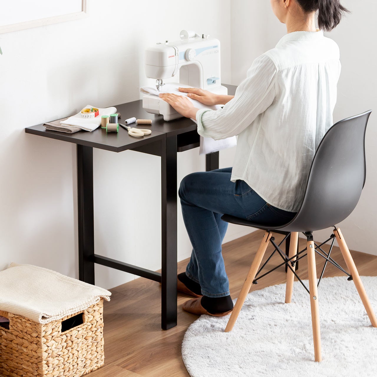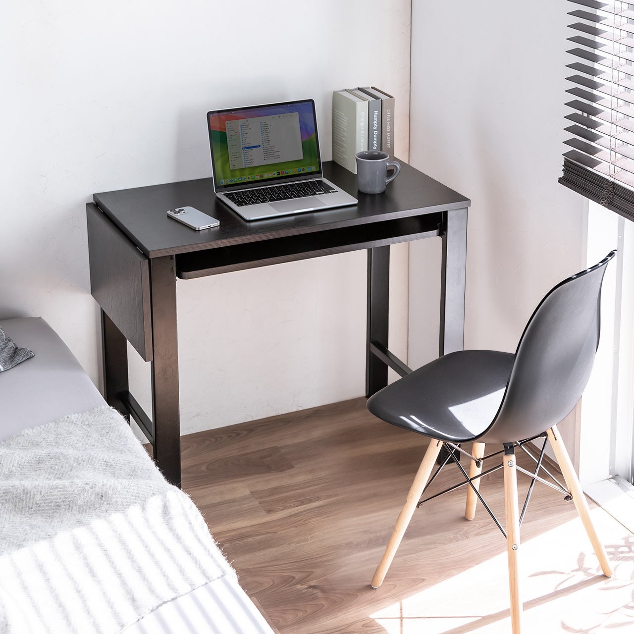 このデスクは、幅85cm×縦45cmのコンパクトなサイズから、使用時に最大幅110cmまで拡張可能です。狭い部屋でも広々とした作業スペースを作り出し、デスクでの作業が快適になります。拡張も簡単にでき、手間がかかりません。