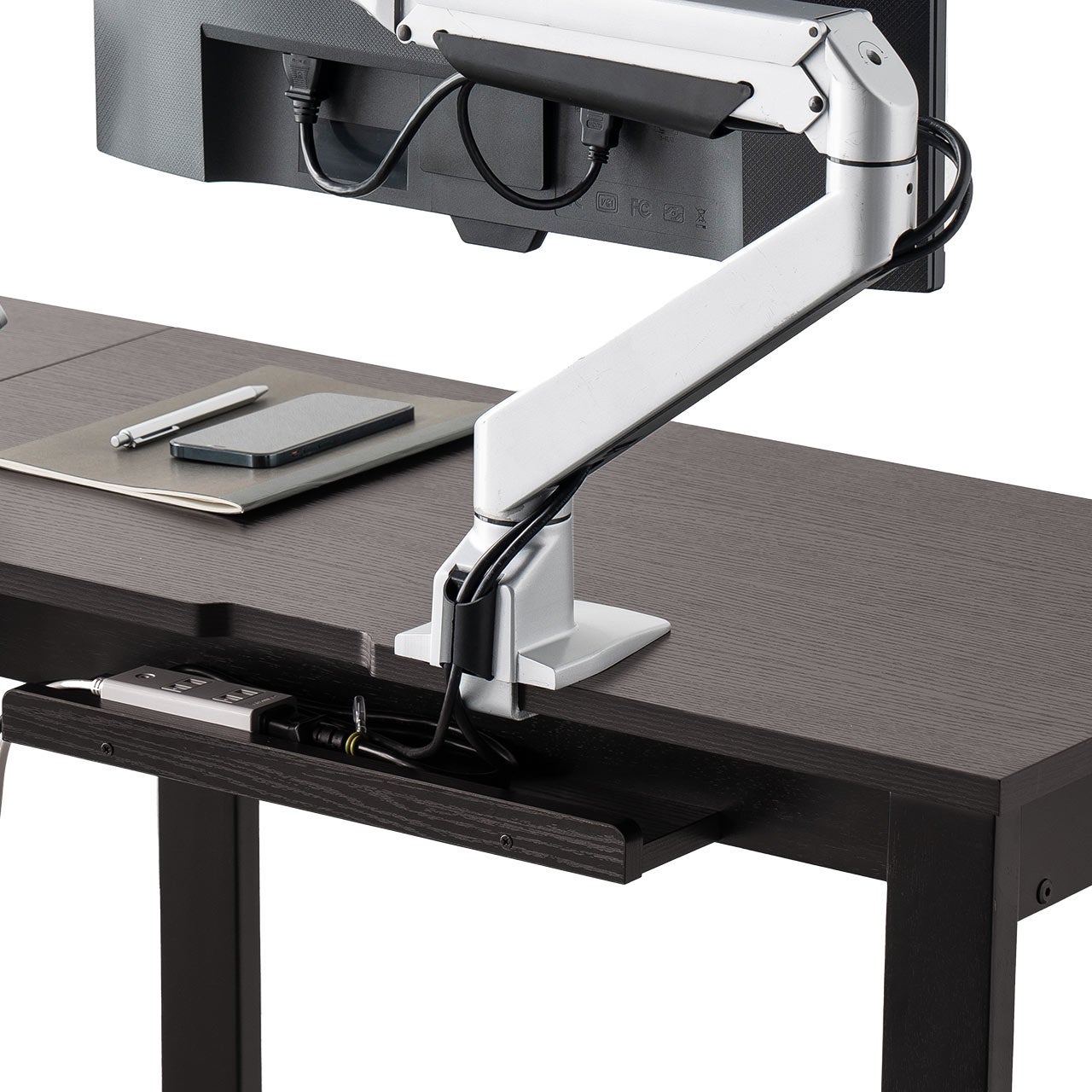 天板の耐荷重は30kg、拡張部分とキーボードスライダーはそれぞれ5kgの耐荷重になっています。総耐荷重は40kgあり、モニターアームも取り付けが可能です。