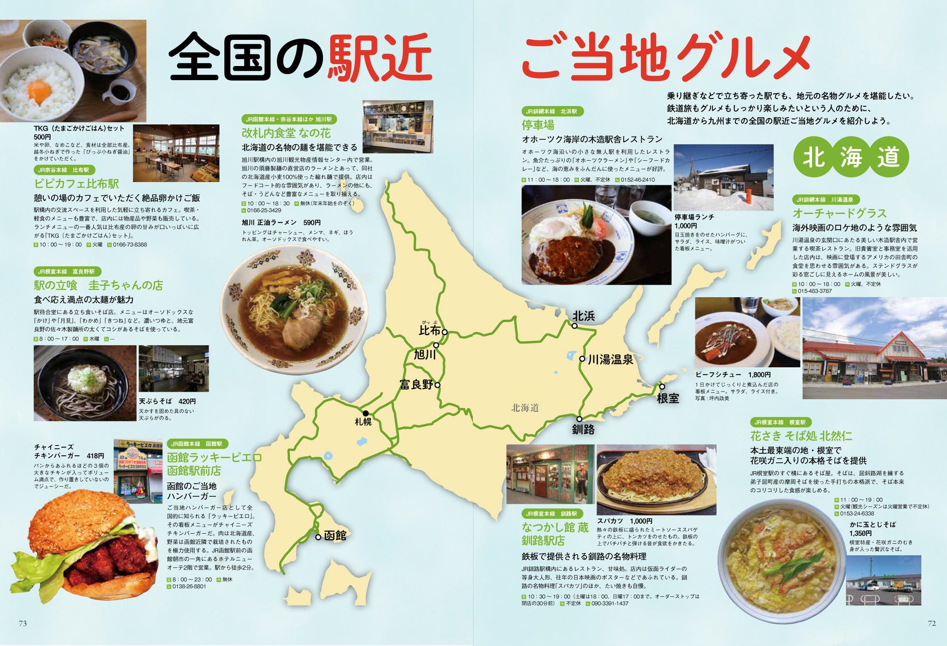 今度の鉄道旅できっと役立つ駅近ご当地グルメガイドを掲載