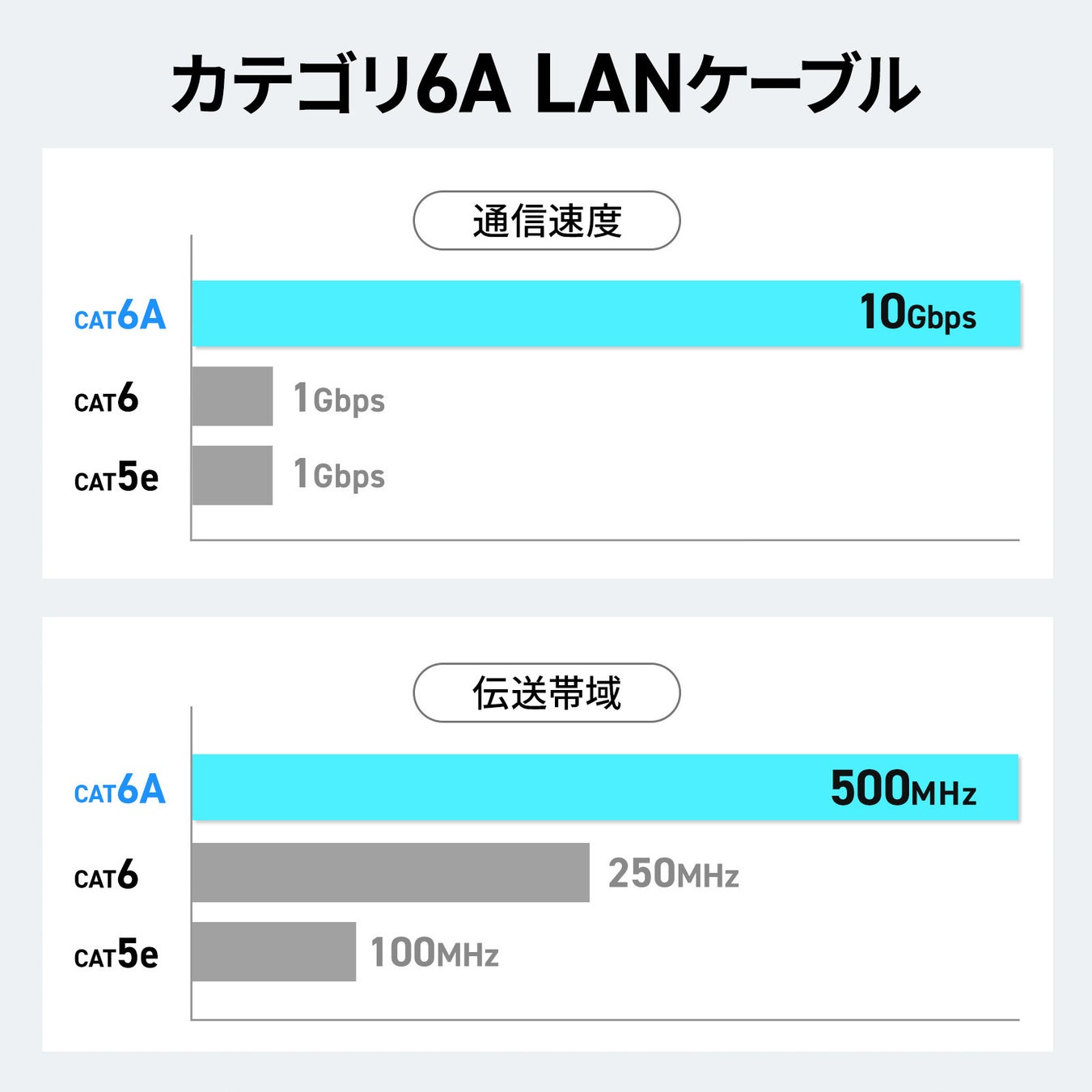 通信速度は10Gbps、伝送帯域はカテゴリ5eの5倍、カテゴリ6の2倍の500MHzをサポート。