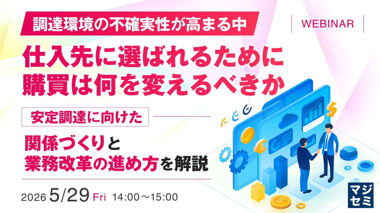 マジセミ株式会社は「【調達環境の不確実性が高まる中】仕入先に選ばれるために、購買は何を変えるべきか」というテーマのウェビナーを開催します。