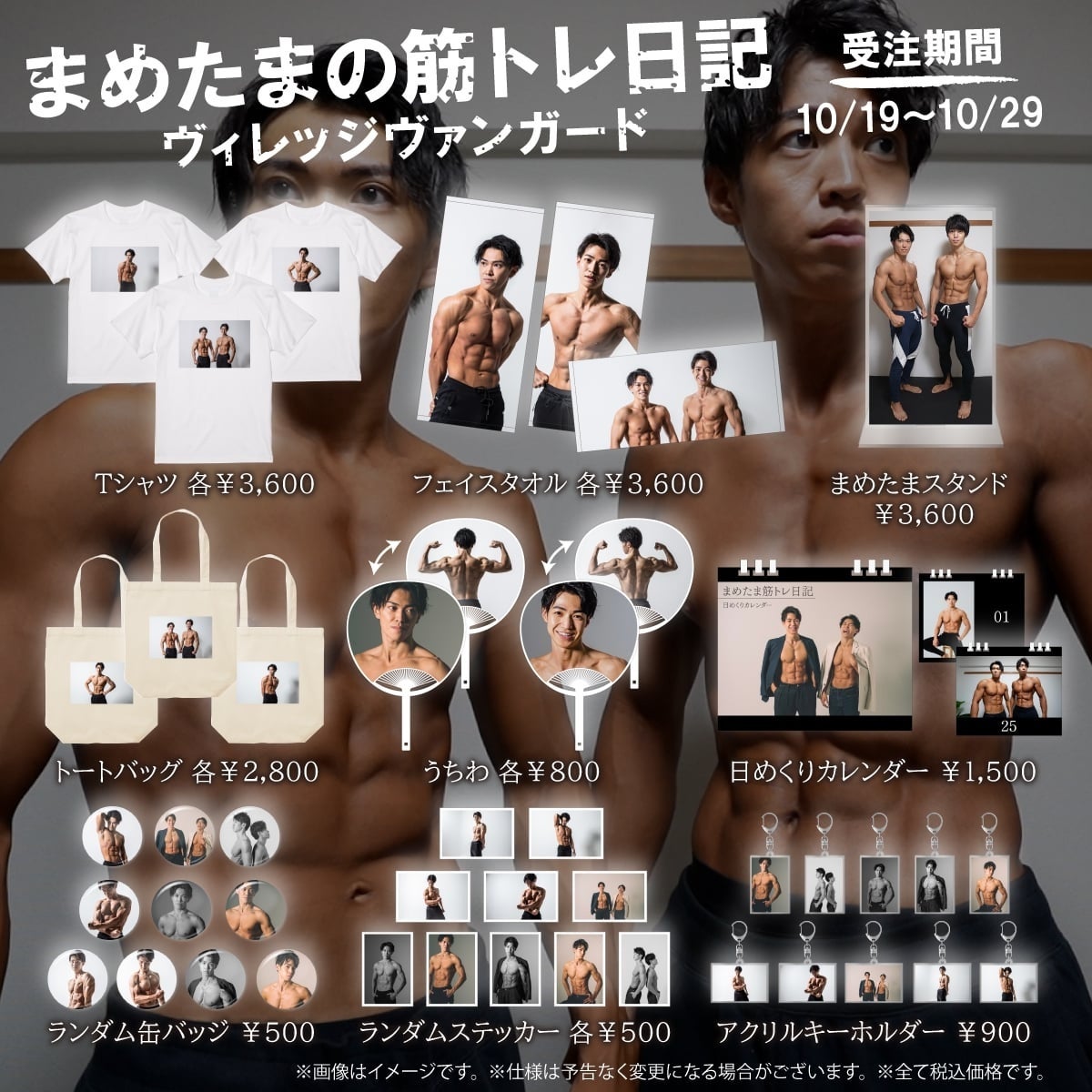 2023年10月19日(木)、日本一の筋トレコンビYouTuberを目指して活躍中の【まめたまの筋トレ日記】とヴィレッジヴァンガードが待望のコラボ! 小物からアパレルなど、様々な種類のグッズをご用意しました!! 中でも特におすすめなのは「日めくりカレンダー」!毎日かっこいい筋肉が見られます! 2023年10月19日(木)~2023年10月29日(日)の期間限定受注販売となっておりますので、お買い逃がしにはご注意ください! 今だけ限定のコラボグッズをお見逃しなく!