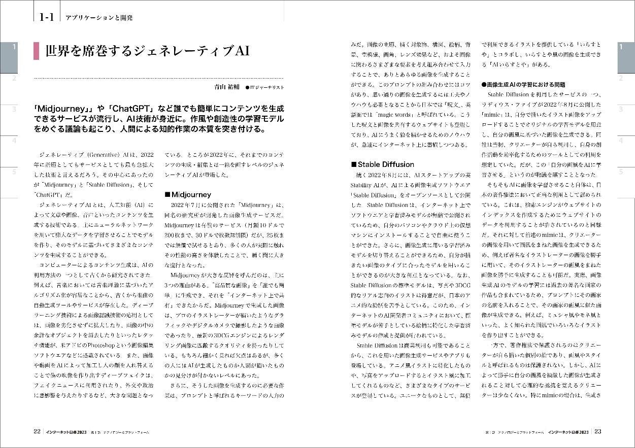 インターネットの影響を技術・ビジネス・社会と多角的に報告するデジタル業界定番の年鑑『インターネット白書』。27年目を迎えた最新刊の2023年版は、世界を席巻するジェネレ―ティブAI、Web3の重要概念であるDAO、ステルスマーケティング規制や欧州データ流通法整備の動きなど、インターネットから始まる新しい社会の動きを38人の専門家の寄稿と統計資料により報告しています。