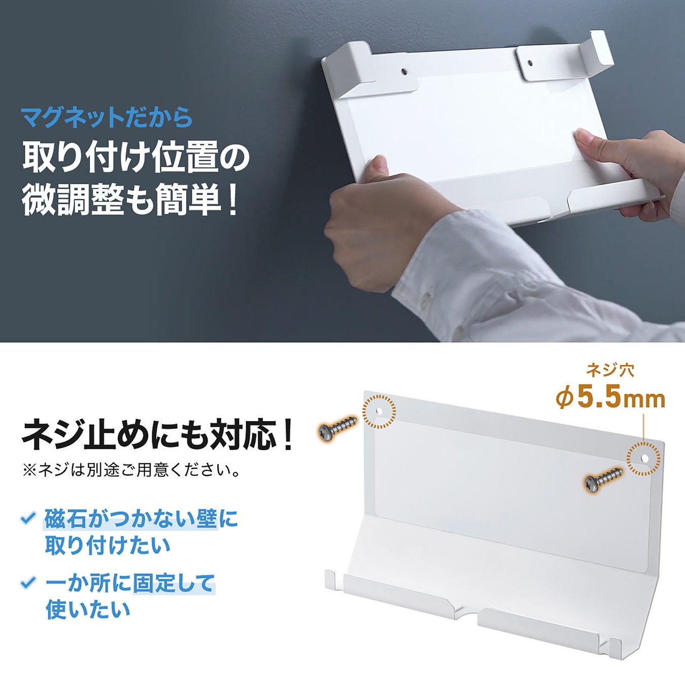 クリップやネジ不要、マグネット式で簡単設置