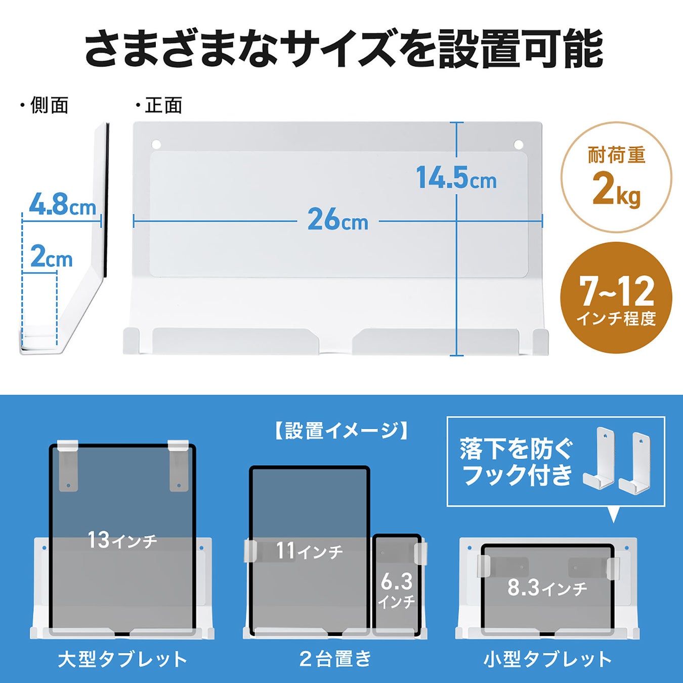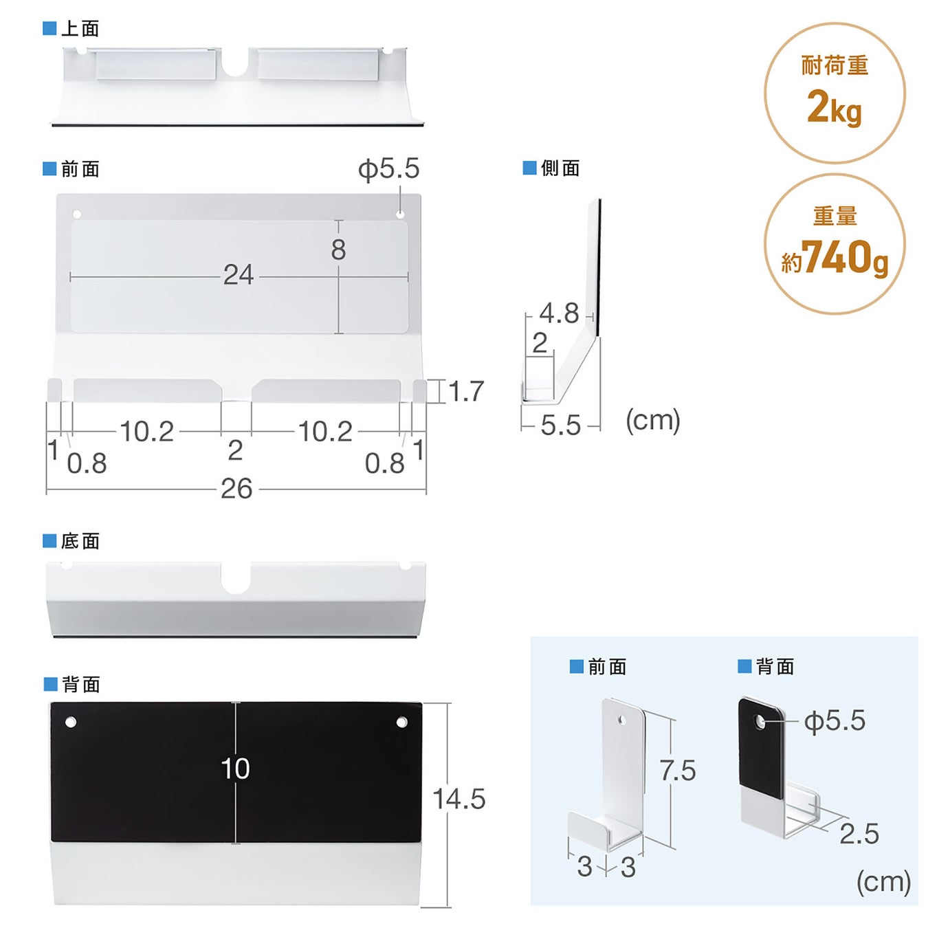 スチール製で耐荷重2kg、省スペース&高耐久