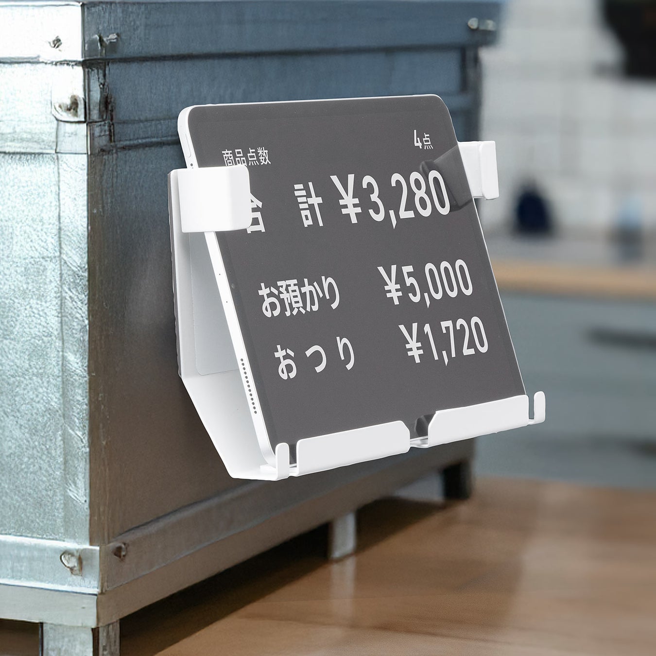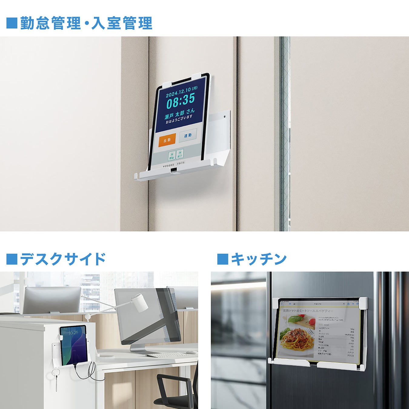 面倒なネジ止めやクリップ操作は不要。強力なマグネットでiPadやタブレットをしっかり固定します。壁面や冷蔵庫などの鉄製品にも簡単に装着可能。設置に手間取らず、すぐに業務を始められます。
