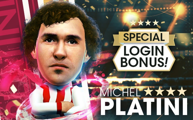 ★4バージョンの「ミシェル・プラティニ」、「ダビド・ビジャ」など名選手がもらえるスペシャルログインボーナスもあわせて実施します。