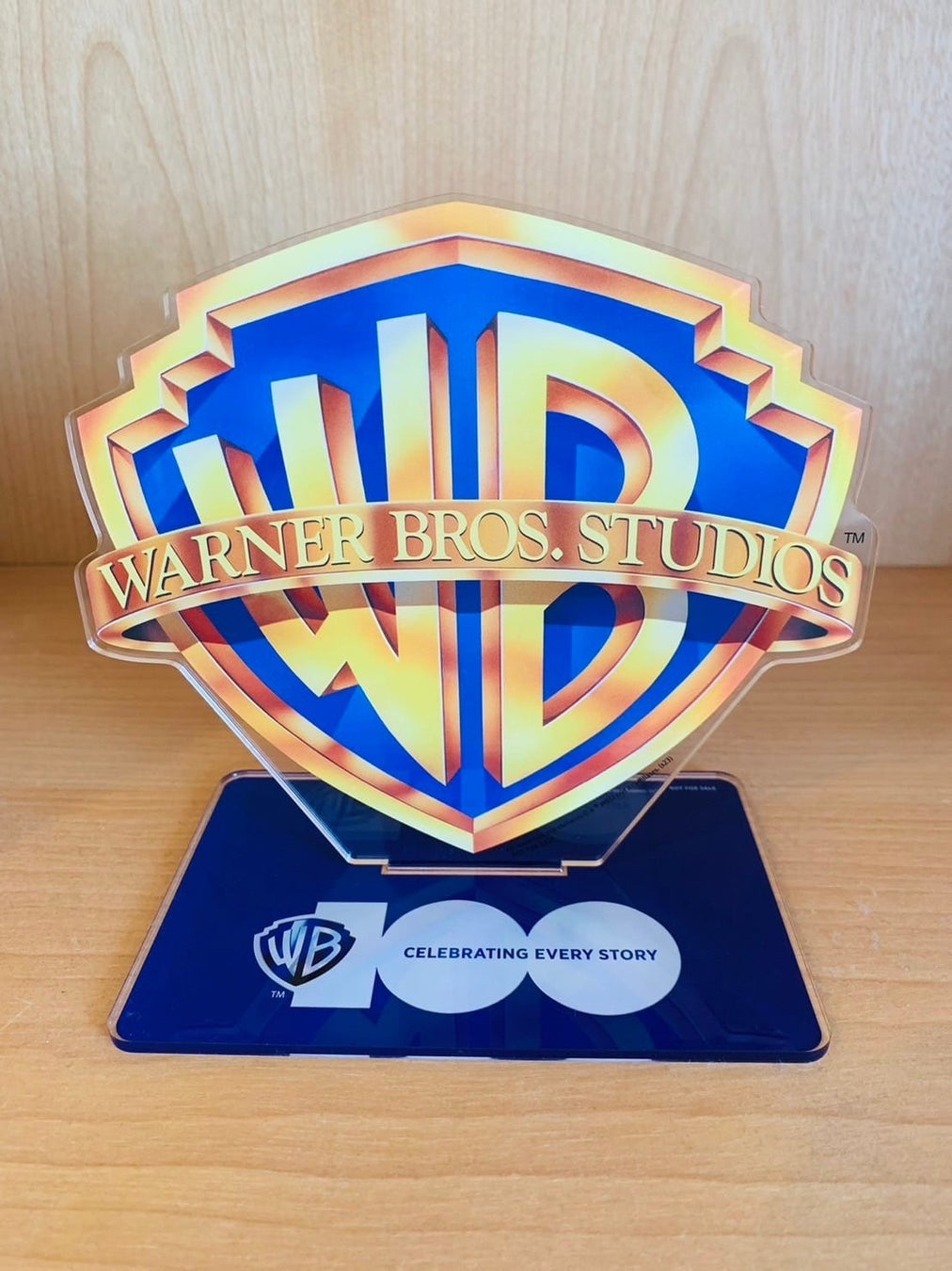 「ワーナー・ブラザース 100 周年記念 WB100 ポップアップストア」にて商品を5,500円(税込)以上お買い上げのお客様に「WBロゴ アクリルスタンド」をプレゼント!大きさはなんと16㎝!組み立てた際の存在感は圧巻の一言!!