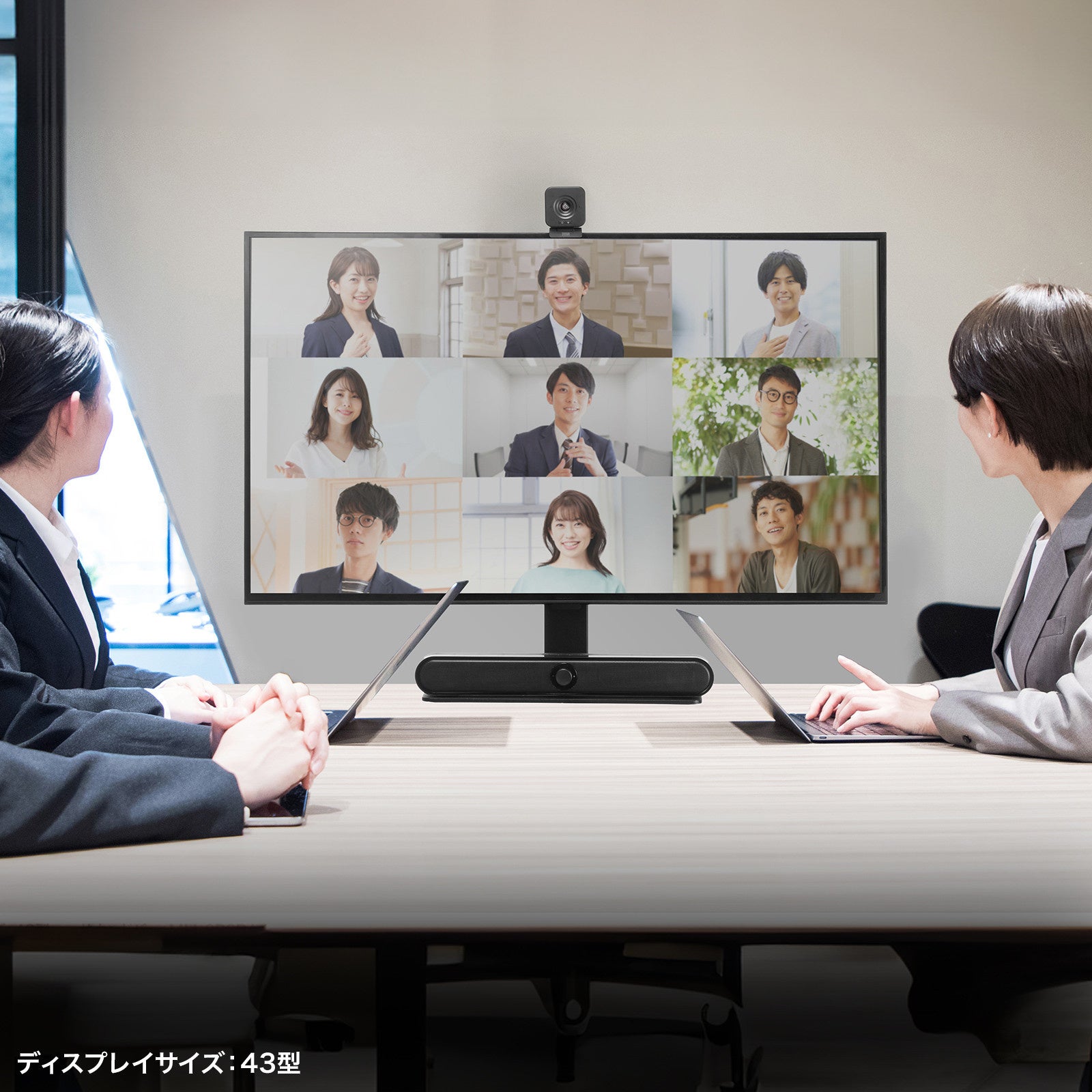 ディスプレイの下に空間を作ることで、サウンドバースピーカーやWEBカメラ、リモコンなどを置くことができます。会議やミーティング時、リビングでの使用時などに便利です。