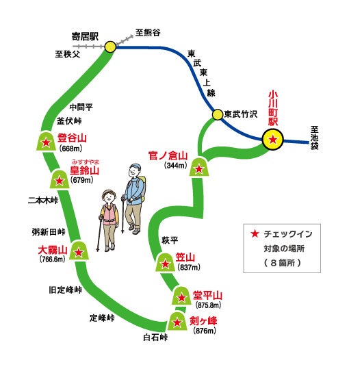 小川町駅、官ノ倉山、笠山、堂平山、剣ヶ峰、大霧山、皇鈴山、登谷山(8カ所)