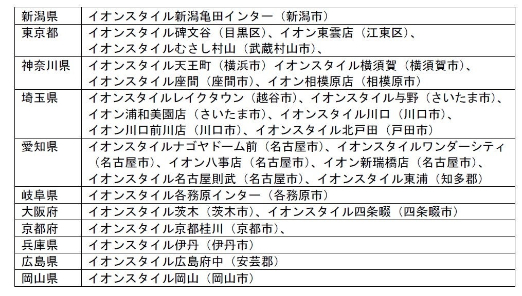 販売店舗:関東・北陸信越・東海・近畿・中四国の「イオン」「イオンスタイル」27店舗