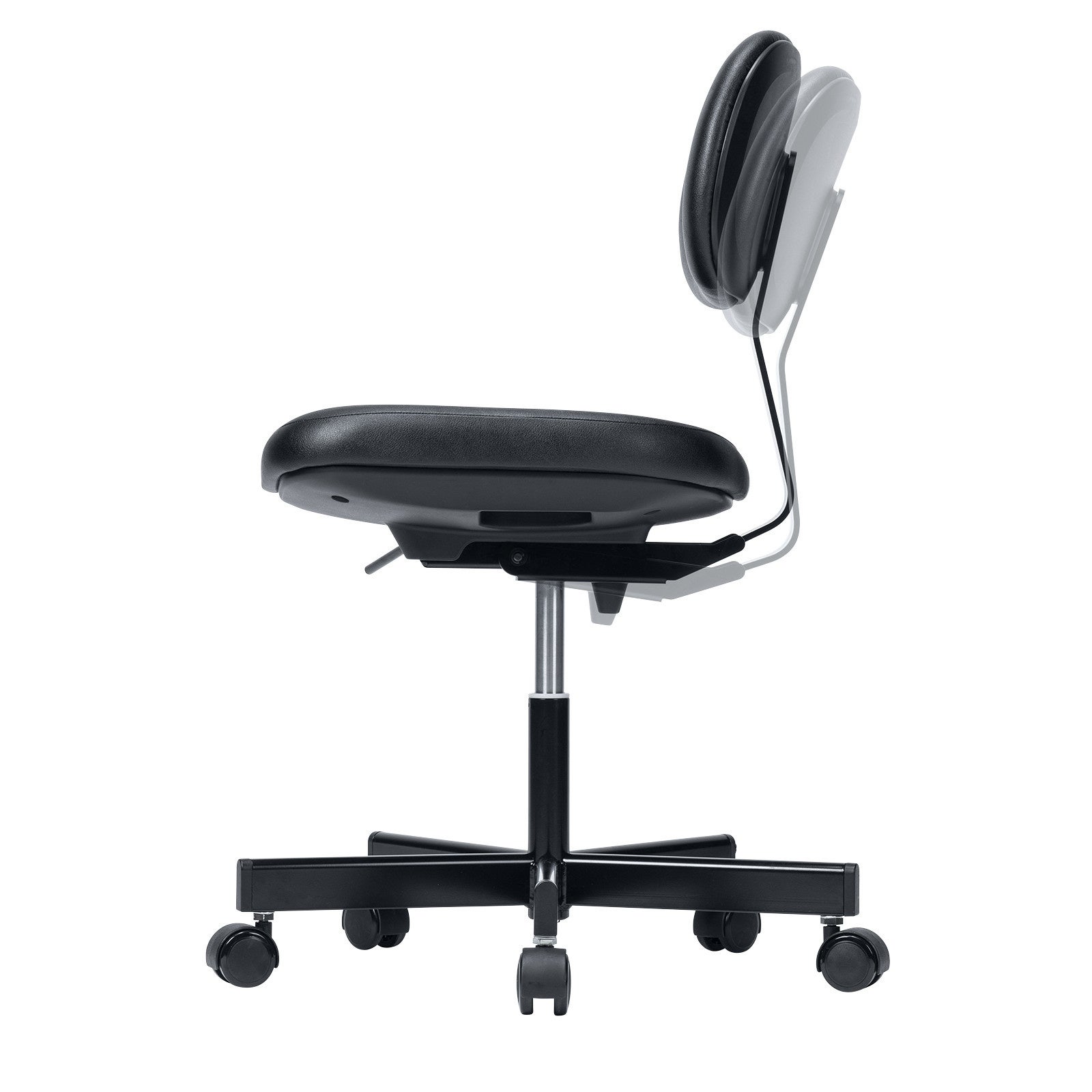 体重を掛けると背もたれが後ろに傾斜するロッキング機能付きで、作業の合間にリラックスした姿勢をとることができます。