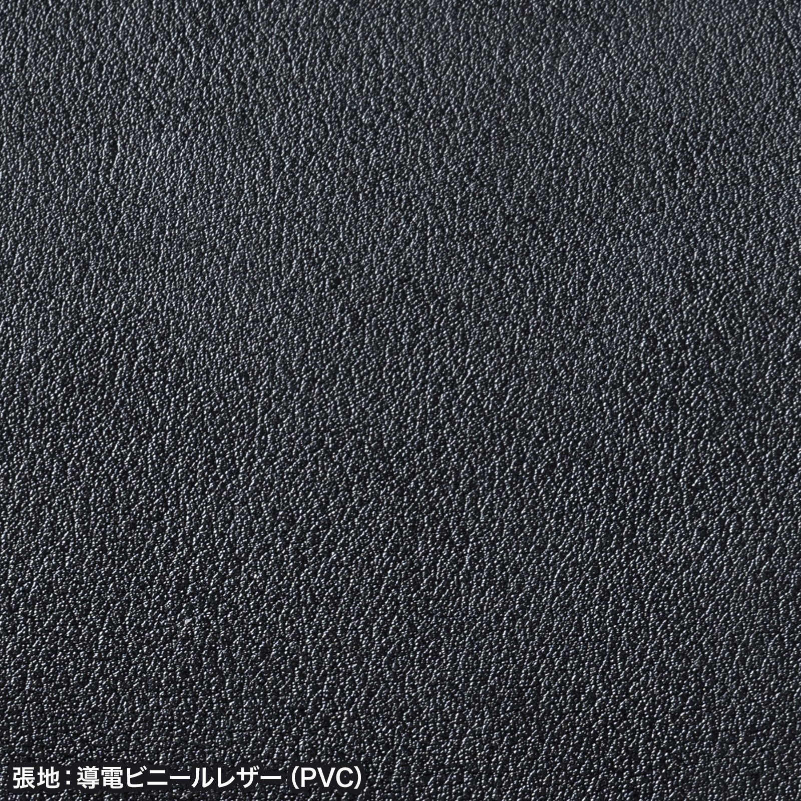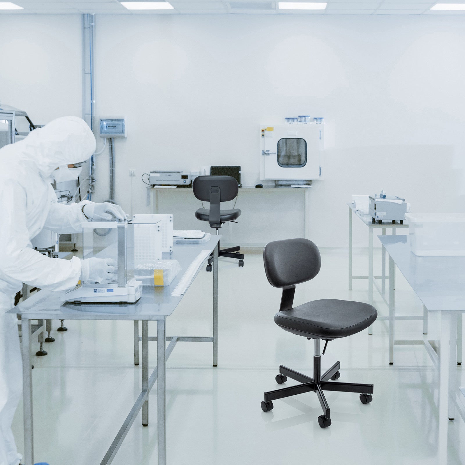 背もたれと座面に導電ビニールレザーを採用し、作業者のアース経路を確保することで、人体への静電気の蓄積を最小限に抑えるチェアです。
