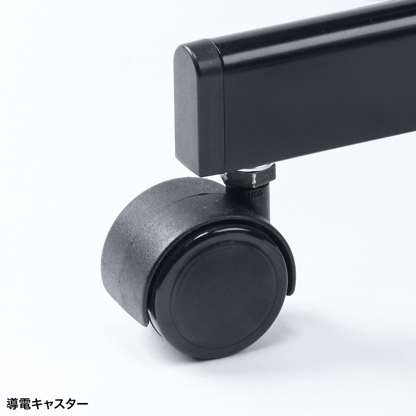 ステンレスフレークを含有したウレタン製双輪キャスターにより、優れた導電性を実現します。
